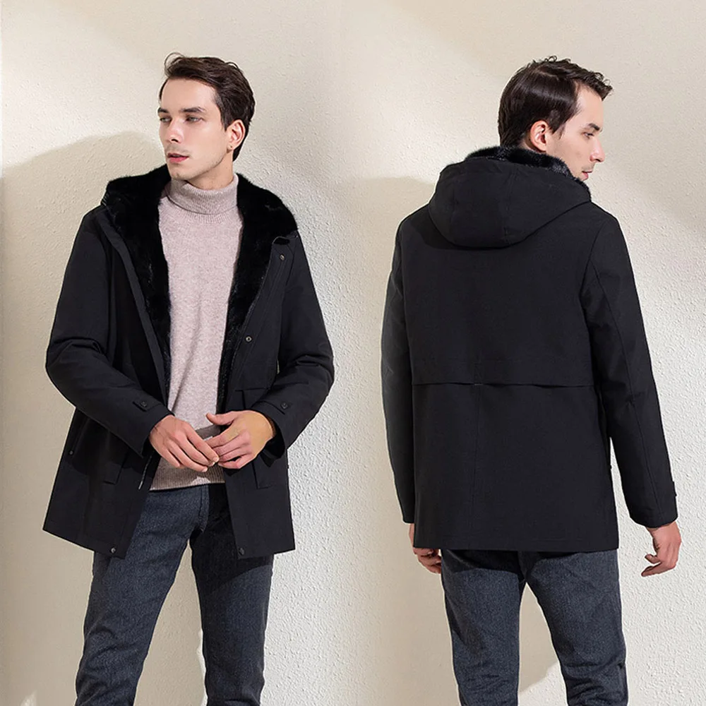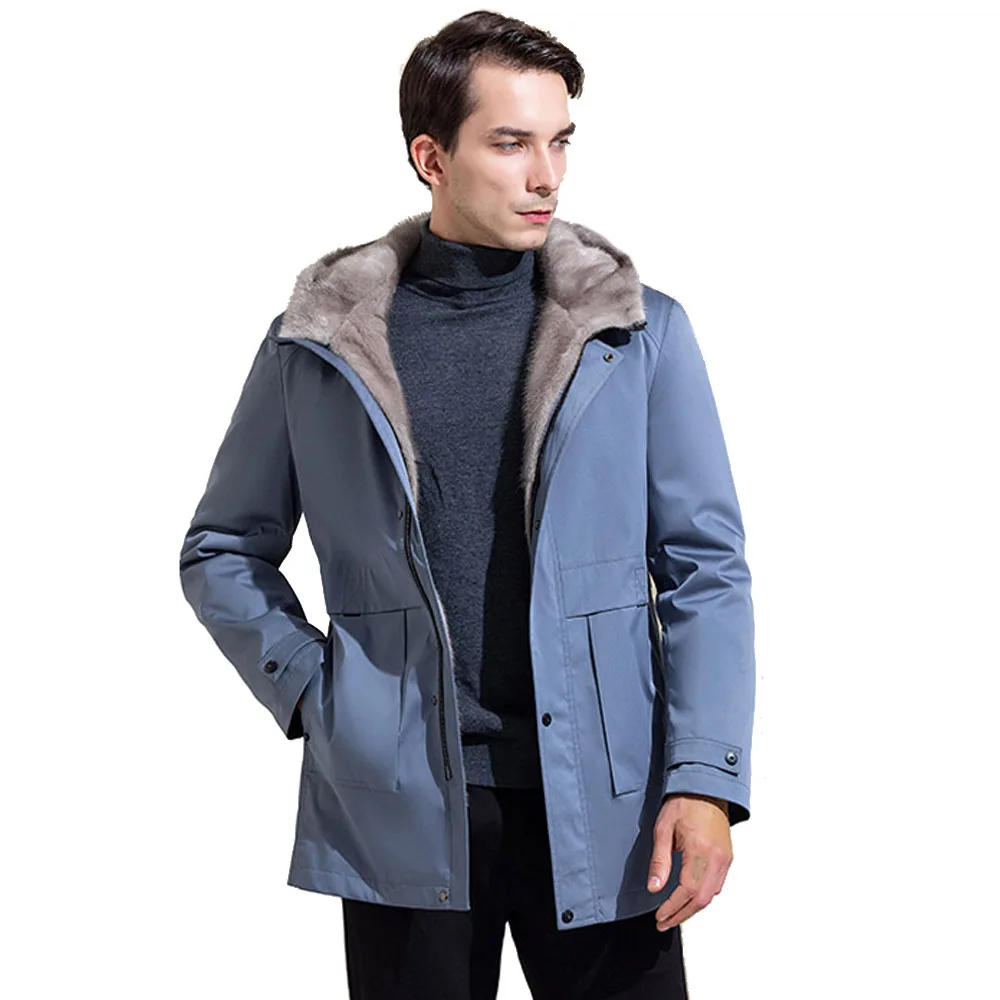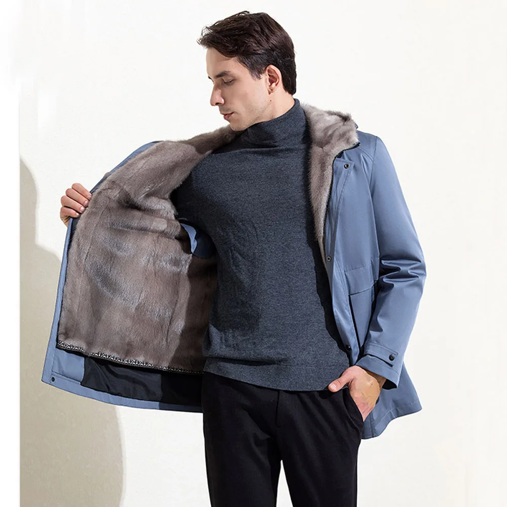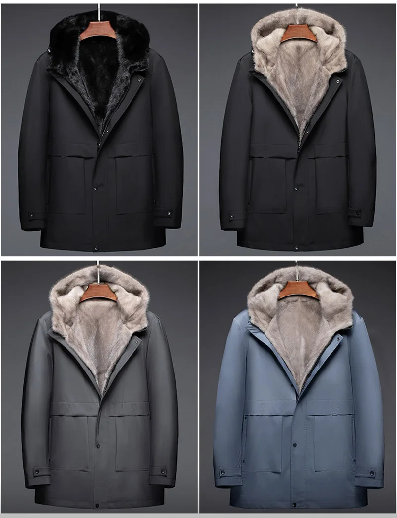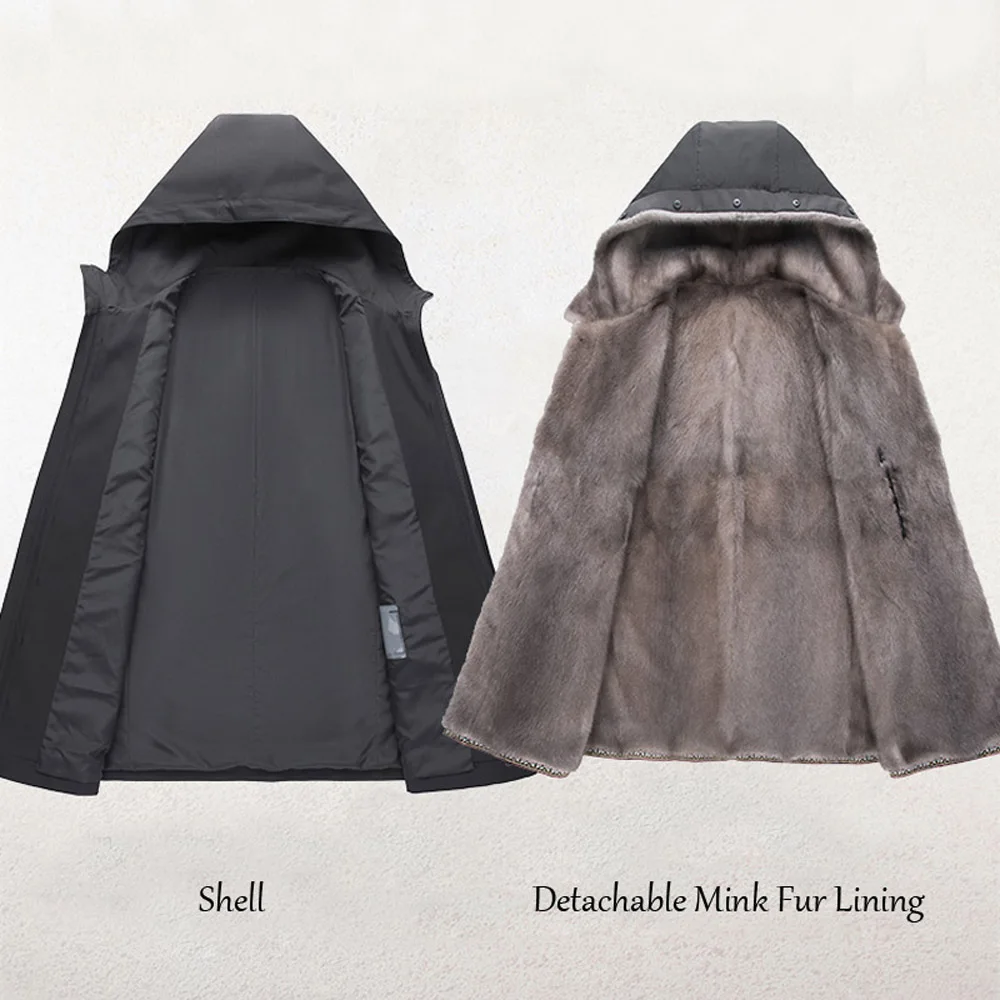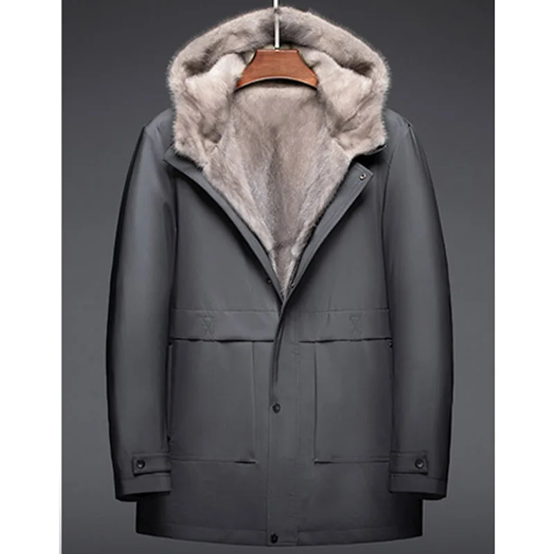 Роскошная Одежда из меха норки, мужское зимнее теплое пальто из натурального меха, ветрозащитные парки с капюшоном, Высококачественная куртка из натурального меха