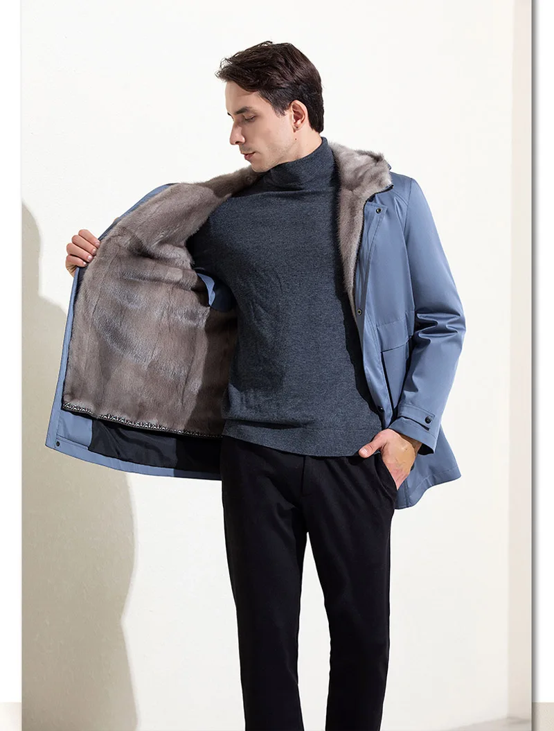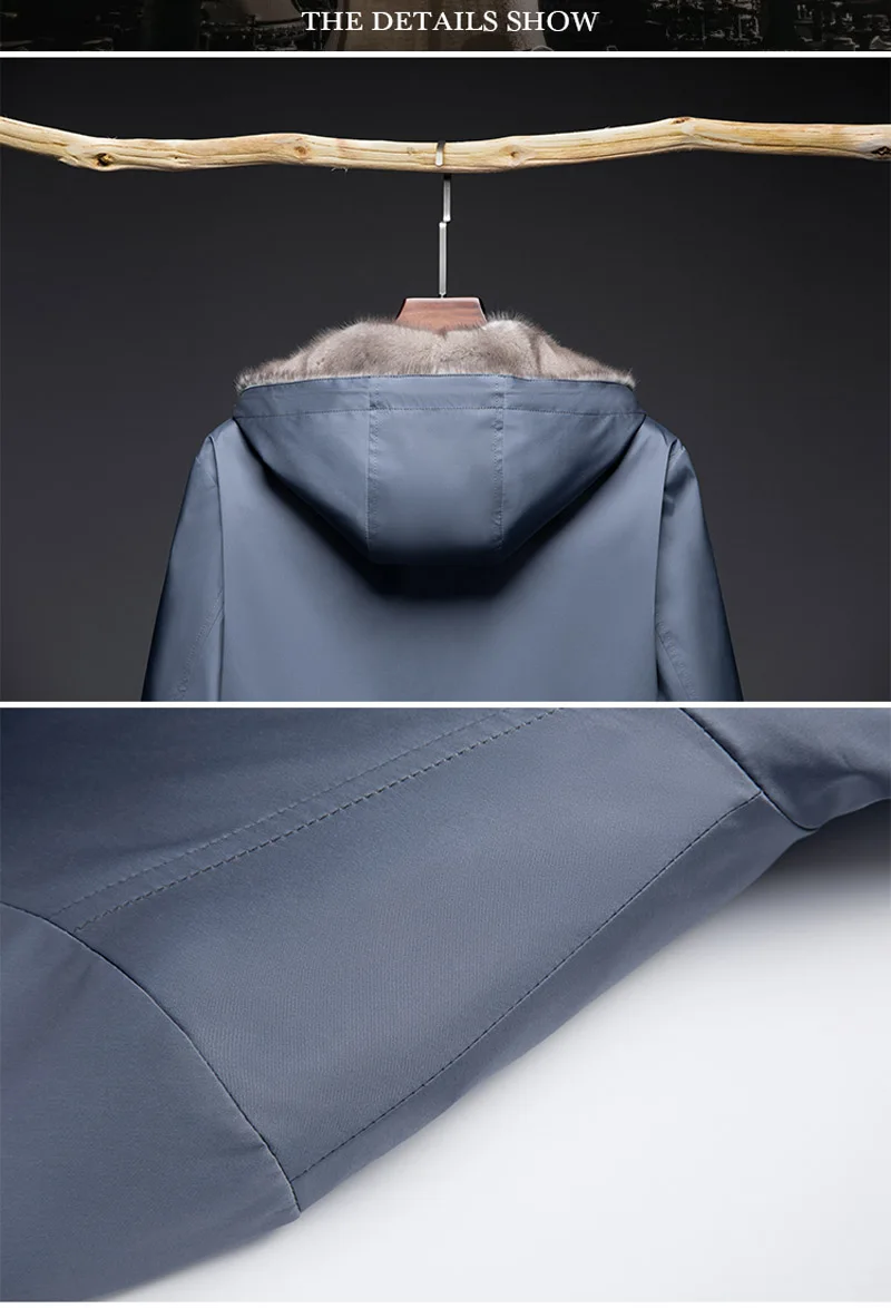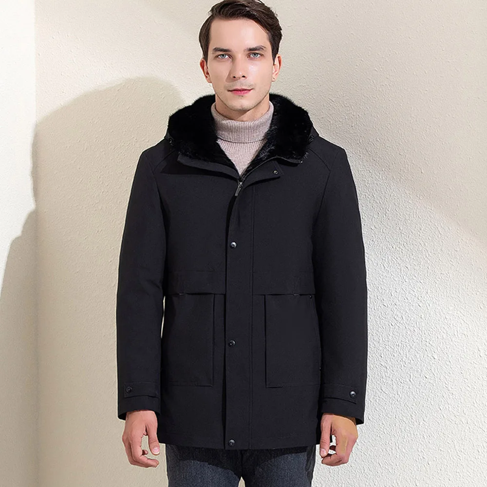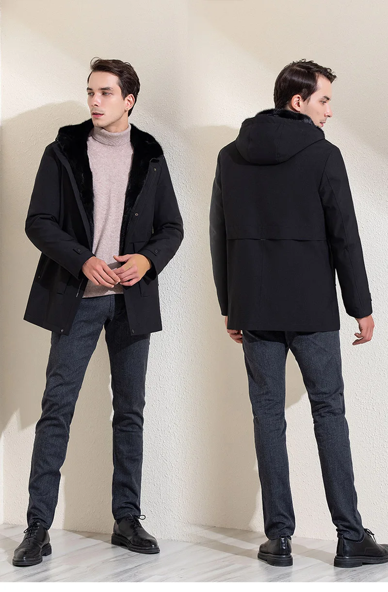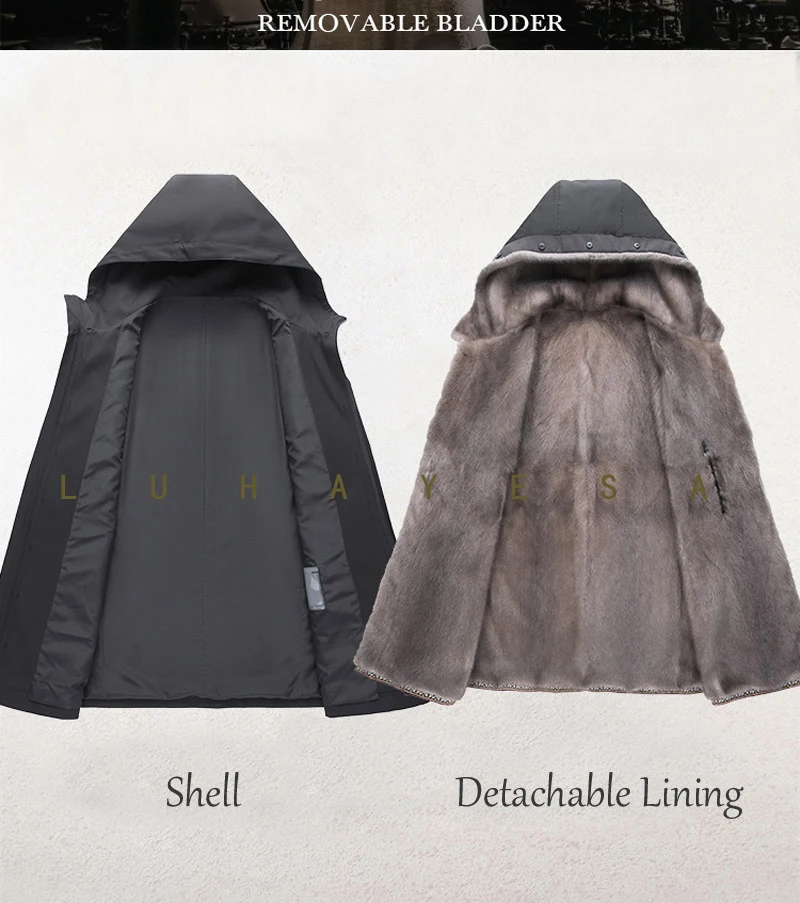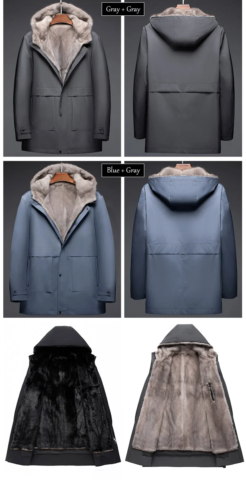 Роскошная Одежда из меха норки, мужское зимнее теплое пальто из натурального меха, ветрозащитные парки с капюшоном, Высококачественная куртка из натурального меха