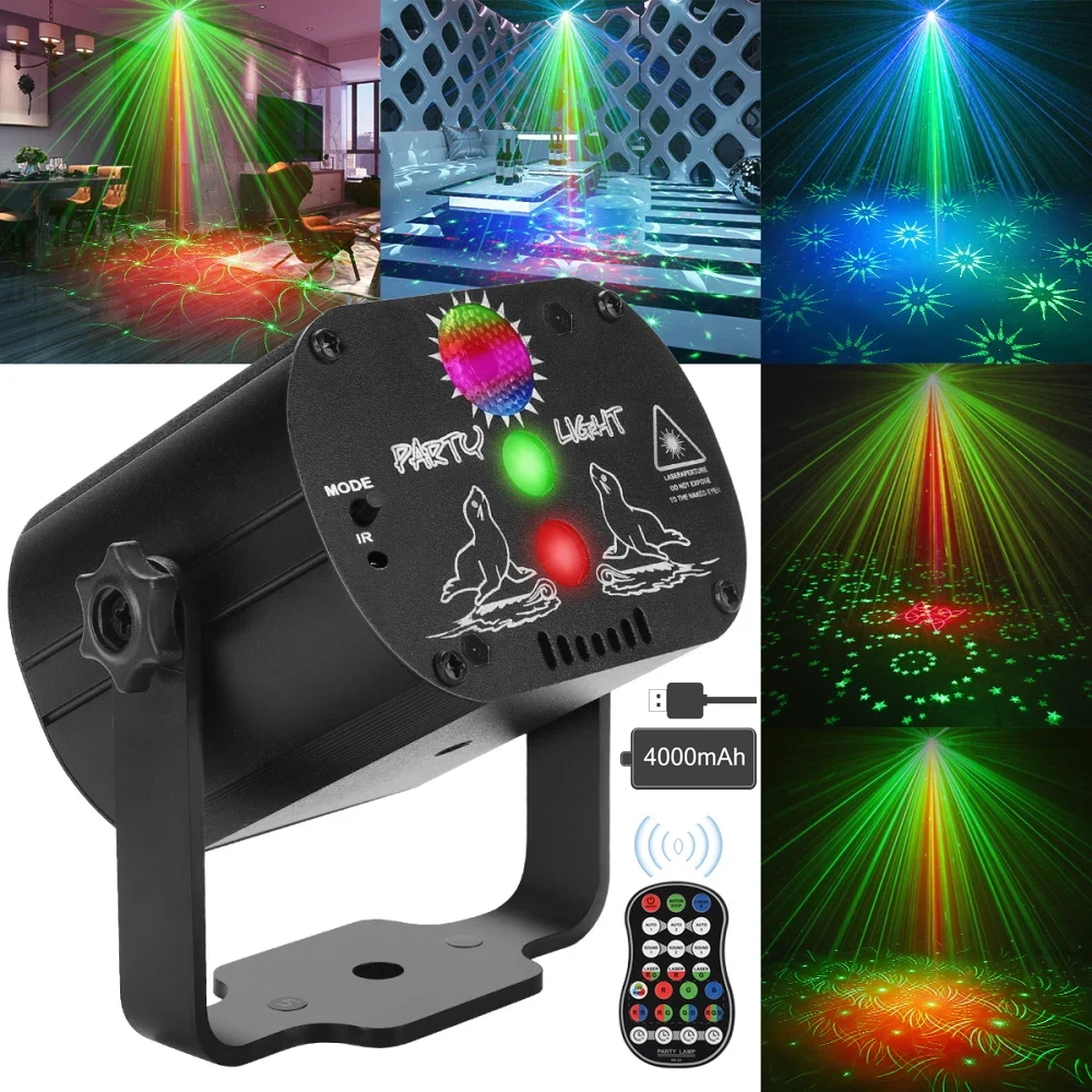 60 светильник эффекты вечерние светильник s Led Dj диско этапа светильник ing с звуковая активация дистанционного Управление Перезаряжаемые лазерный проектор лампа
