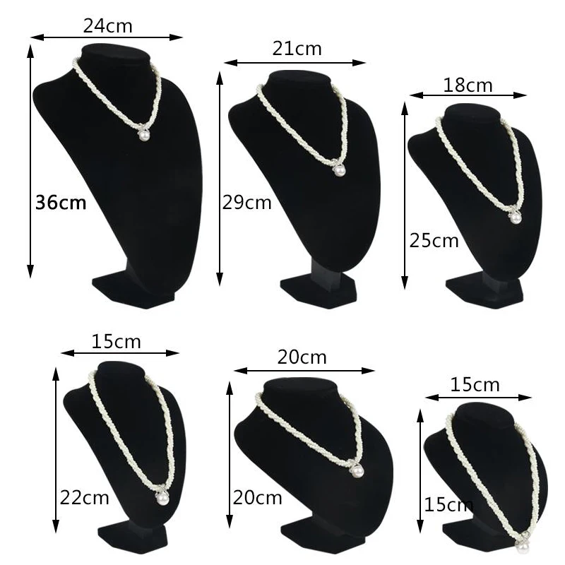 Черный высокий уровень бархатные ювелирные изделия Дисплей Бюст ожерелья подвески с держателем подставка различные варианты роста ручная работа