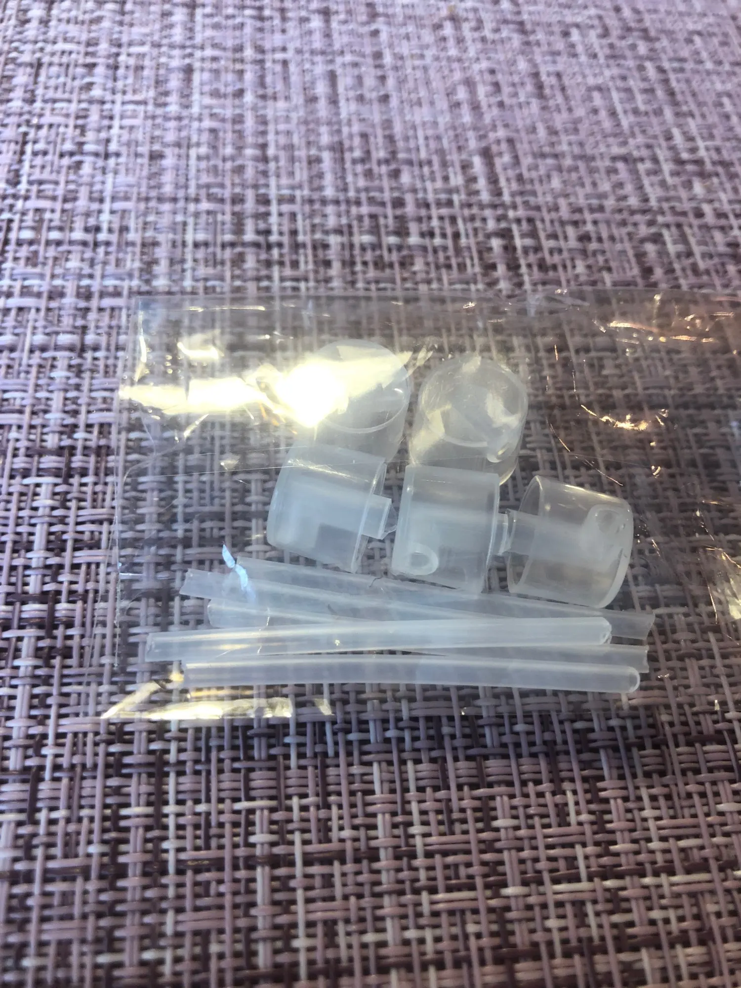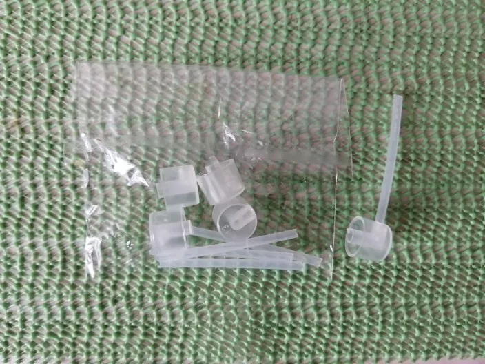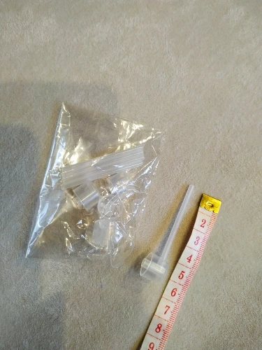 Заказ пришёл за месяц. В комплекте 5 шт. Заказывала вместе с Автомайзерами. Удобные насадки для переливания духов. Не протекает. Оставшиеся духи внутри колпачка и трубочки, при снятии с основного флакона, легко и без остатка стекает в Автомайзер, главное снимать не в пустоту ,а именно в автомайзер. Использованный колпачек с трубочкой не мыла, а положила в пакетик от автомайзера ,в который залила духи и подписала от каких он духов, что бы в дальнейшем пользоваться именно им, именно для этих духов.
