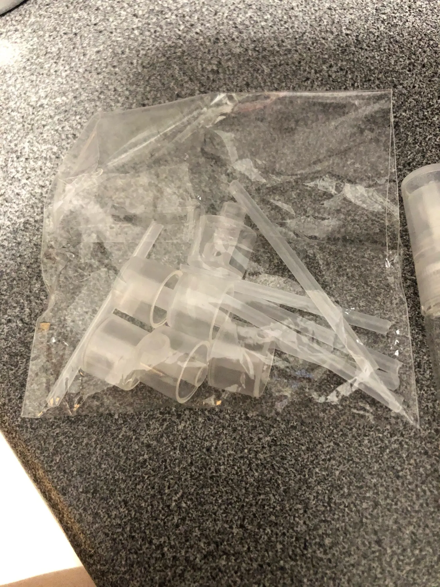 классные штучки, в пакетике 5. трубочки отдельно, но легко вставляются. уже попробовала. раньше у меня был маленький флакон, который снизу накачивается, но буквально через неделю начал протекать и все духи вытекают, неудобно. а тут можно в герметичный флакончик налить и брать с собой. очень здорово. я довольна!