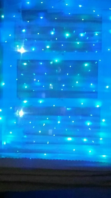 Очень миленькая. хорошенькая светящаяся занавесочка. Я прикрепила на стену. Что-то новенькое в Новом году.
