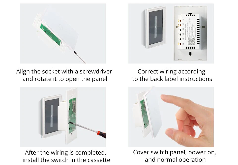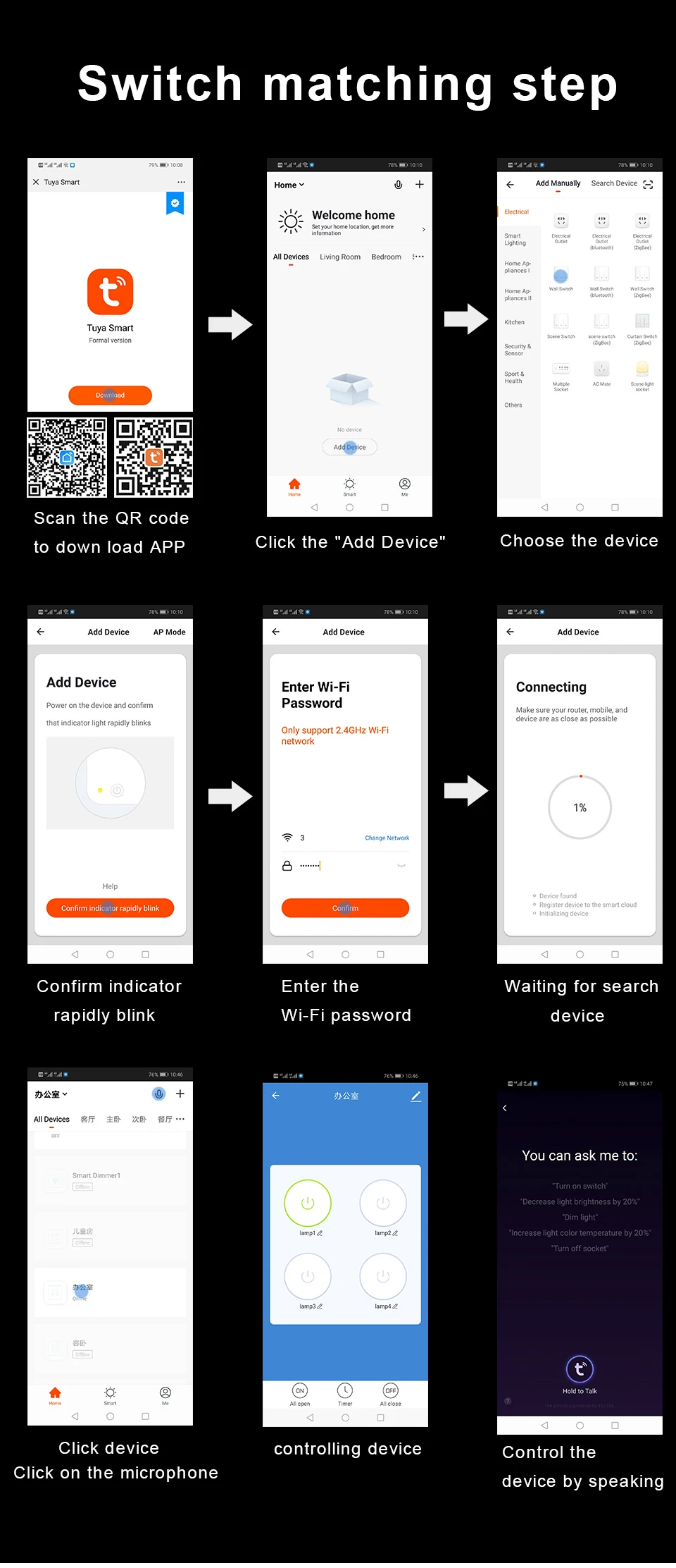 A. Для корректной работы этого умного переключателя требуется нейтральный провод в коробках переключателей.B. Перед покупкой убедитесь, что ваша коробка может установить этот продукт.C. Разные мониторы будут отображать разные цветовые эффекты, товар зависит от фактического полученного продукта.D. Отображение функций в описании предназначено только для справки, пожалуйста, используйте и установите в соответствии с реальной ситуацией. Приложение может быть обновлено, эффект отображения будет другим.