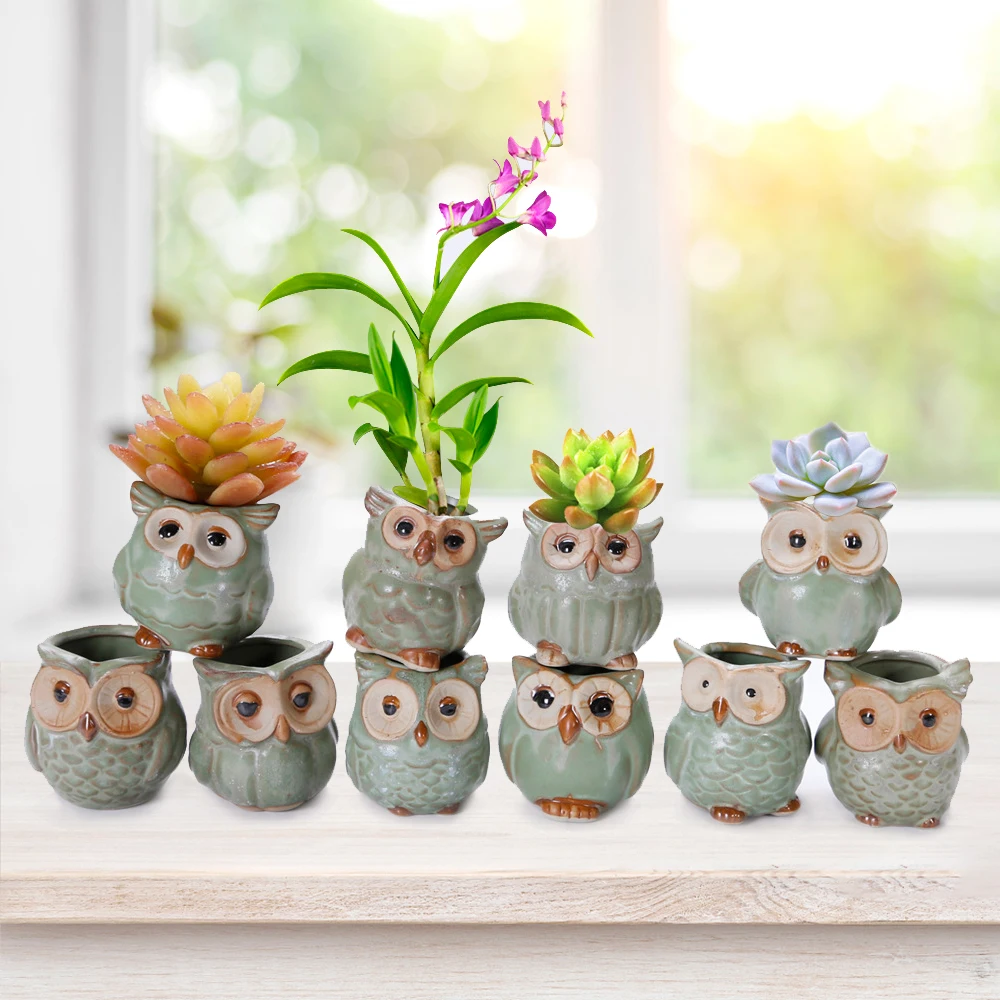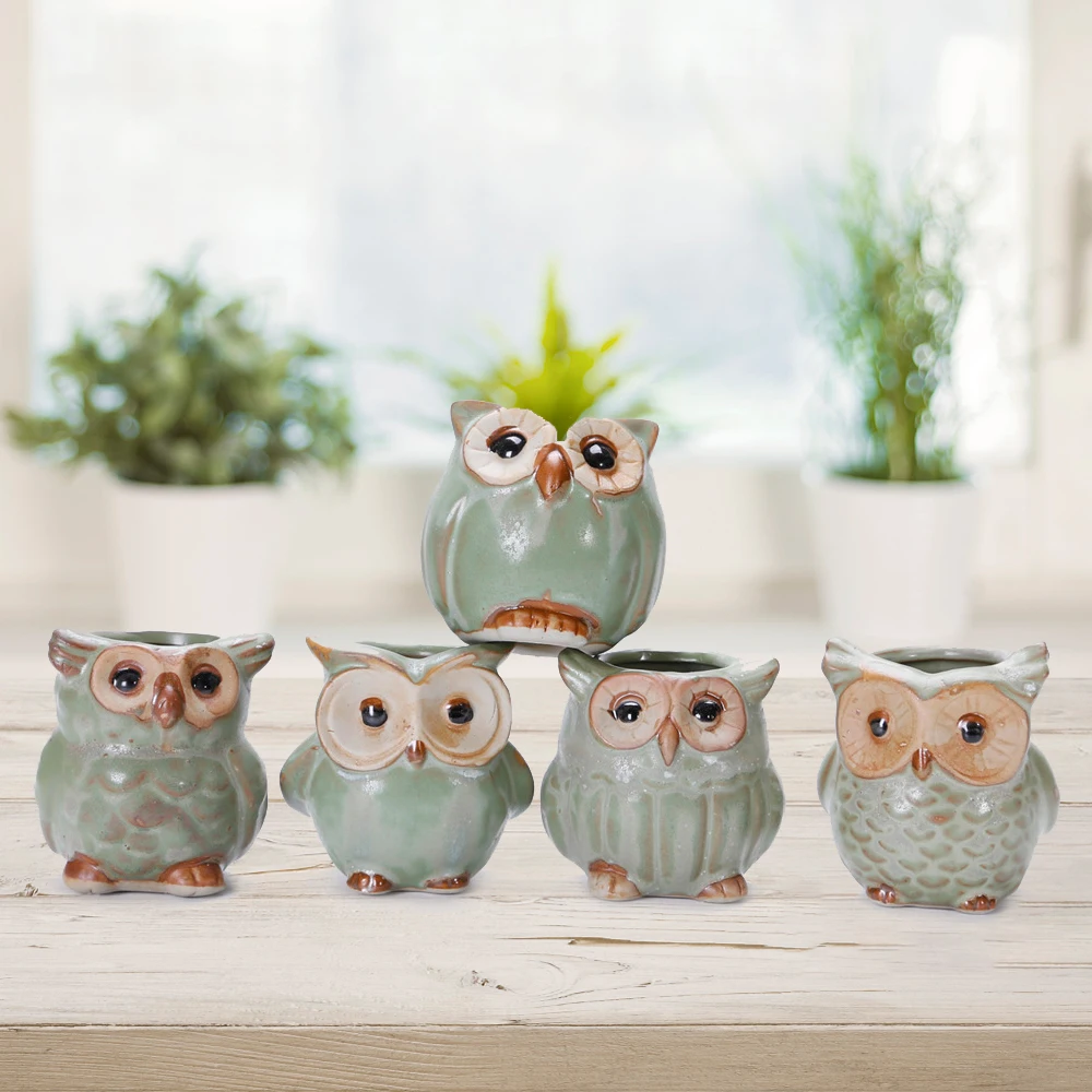 Творческий 5 шт.компл. Керамика Сова Форма цветочных горшков под за...
