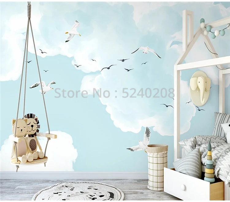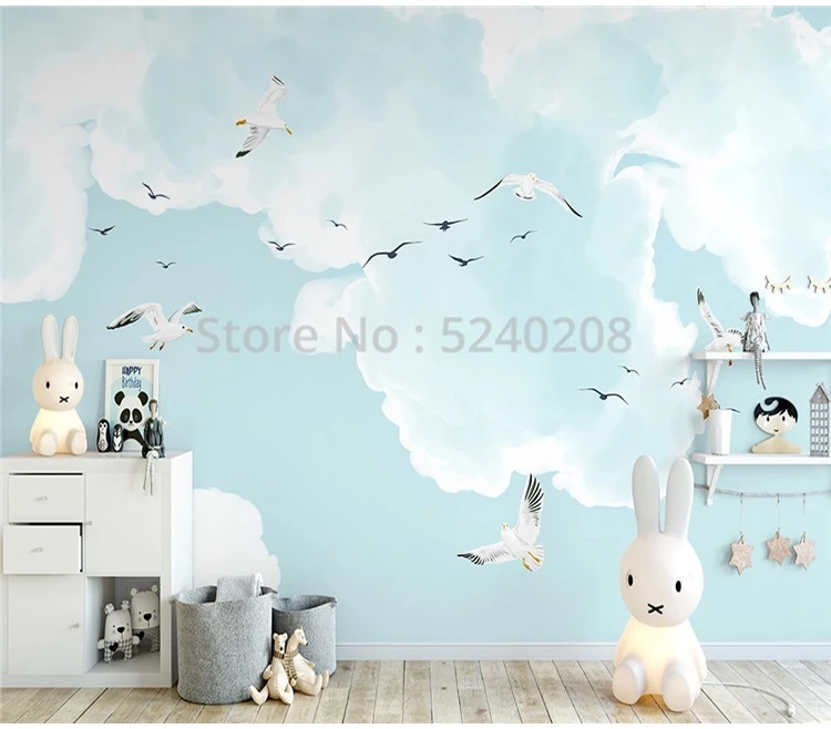Настенные 3D-обои на заказ с изображением неба, облаков, чайки, детская спальня, домашний декор, самоклеящиеся водонепроницаемые обои