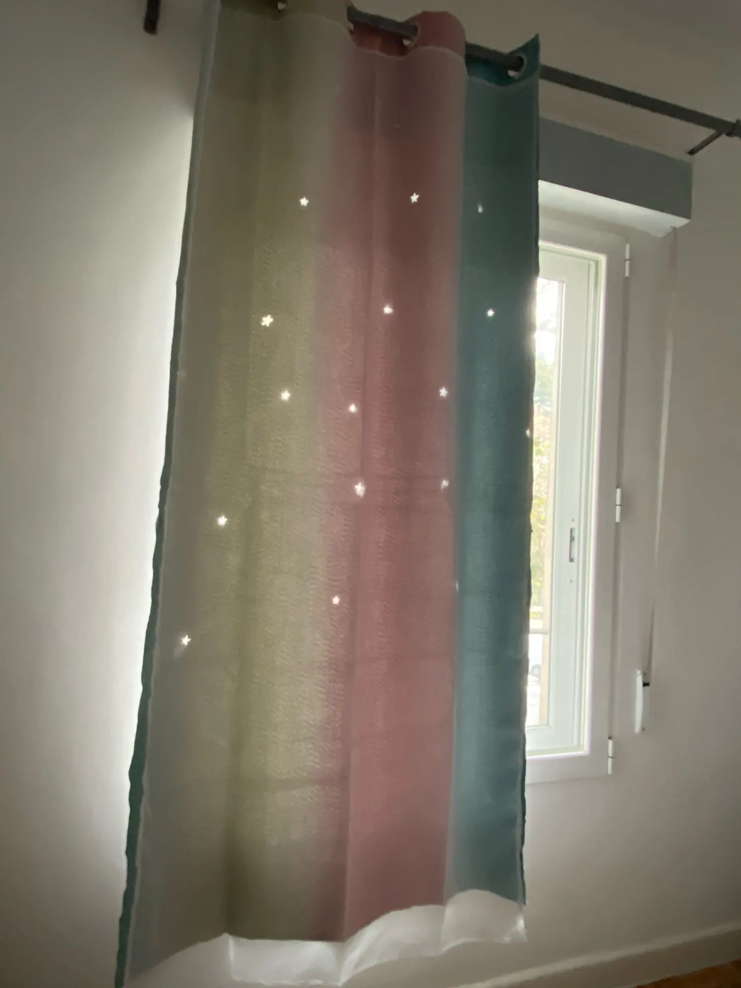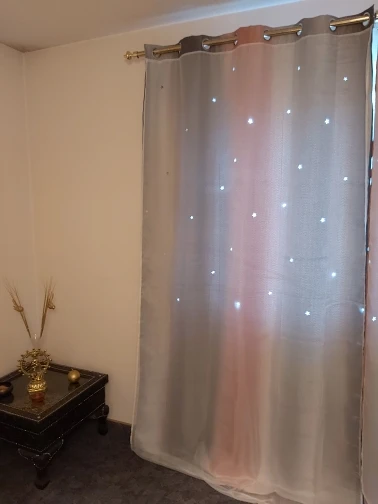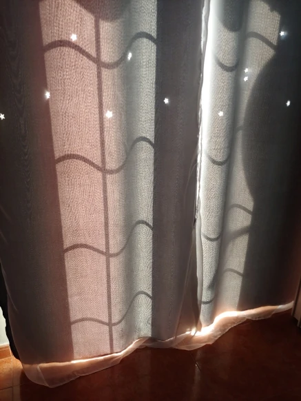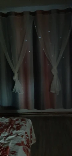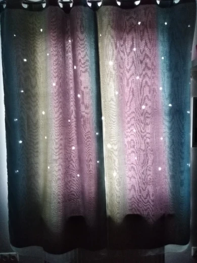 Я заказал это за 30 дней до инспекции моего дома в арендованном доме. Я хотел организовать его хорошо во время осмотра. Но он был отправлен после одного дня инспекции и прибыл через 15 дней. Хотя Доставка занимает всего 15 дней, они отгрузили его через 30 дней и из-за этого я не мог использовать для нужной цели. Для этого арендованного дома, у нас уже была штора от владельца и все еще заказал Новый собственный для цели. Когда цель не выполнена, в конце концов, это напрасно потратить деньги на 2-й занавес. В этом случае я полностью разочарован. И ткань разумная, это только средняя цена. И выглядит разумно, хотя цвета под слоем не будут так видны, сверкающие звезды прибивают его. Выглядит великолепно даже днем и ночью. И при освещении, затемнение цели и в ночное время затенение тяжелого солнечного света цели также достигли. В целом хорошо. Но если мы не получим товар в нужное время, это действительно пустая трата денег и недовольство!