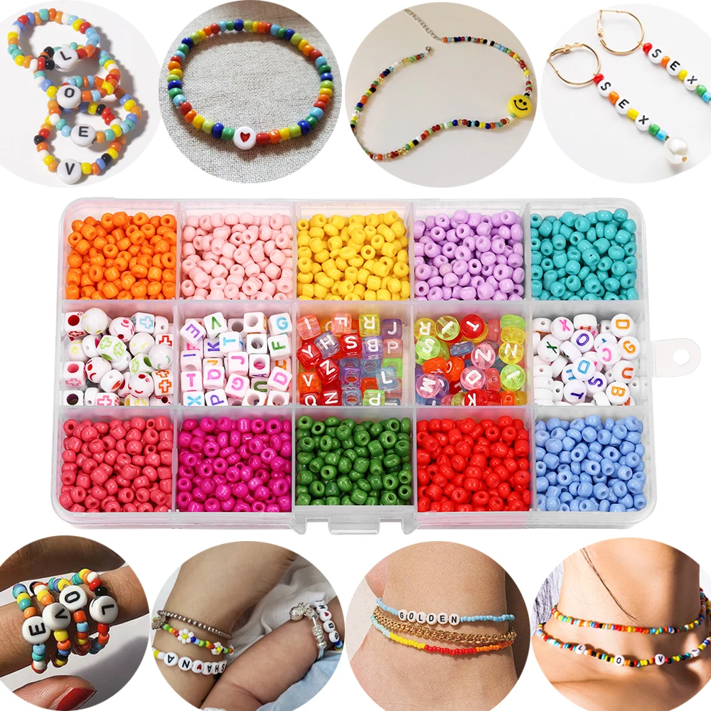 Набор для изготовления ювелирных изделий сделай сам, цветные Популярные бусины для браслета, букв, сердца и эластичная нить, комплекты для самостоятельного изготовления сережек, 1 комплект