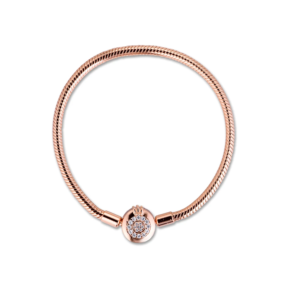 Браслеты из серебра 925 пробы, со сверкающей короной и покрытием из розового золота 925 пробы
