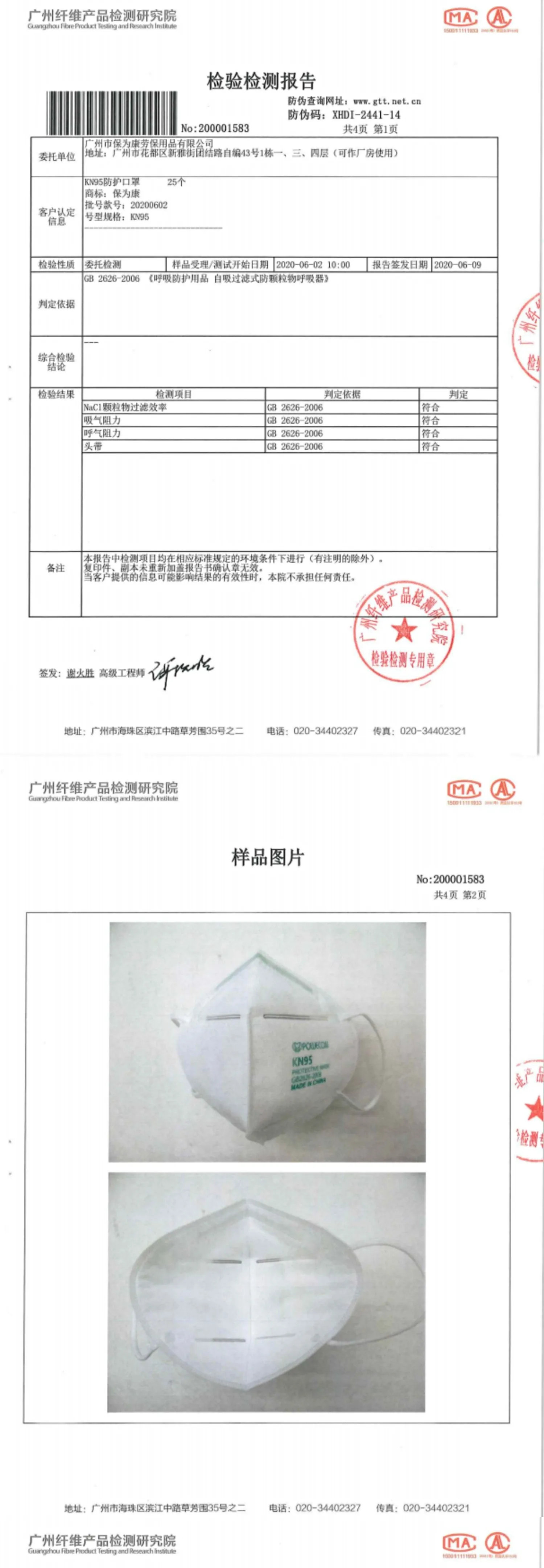 Стандарт безопасностиGB2626-2006