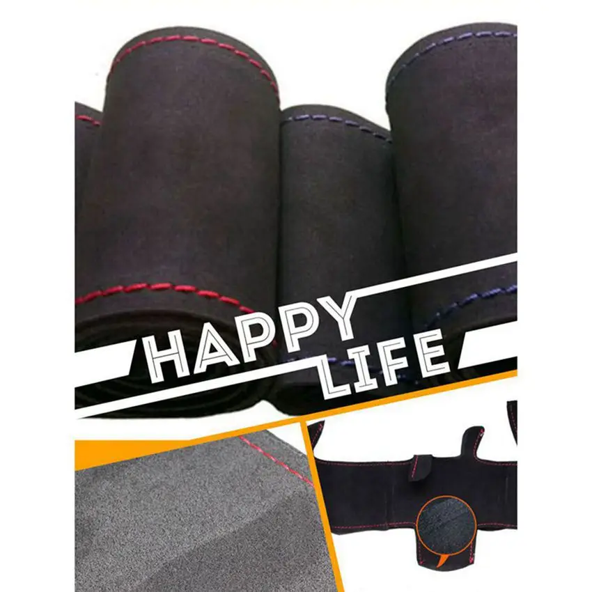 Сшитый вручную черный замшевый кожаный чехол рулевого колеса автомо...