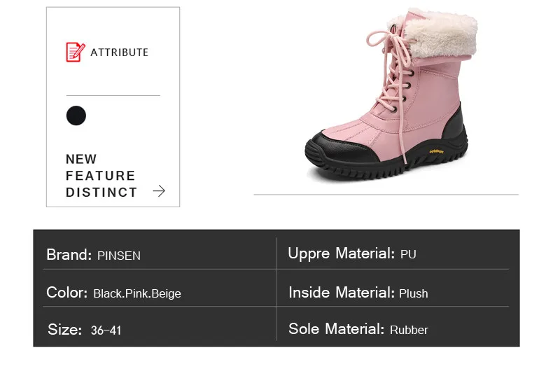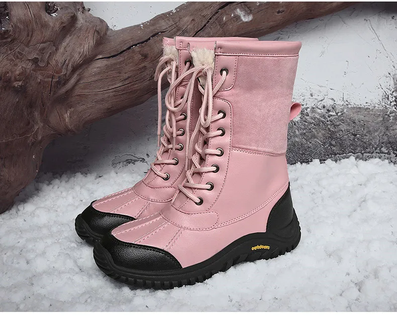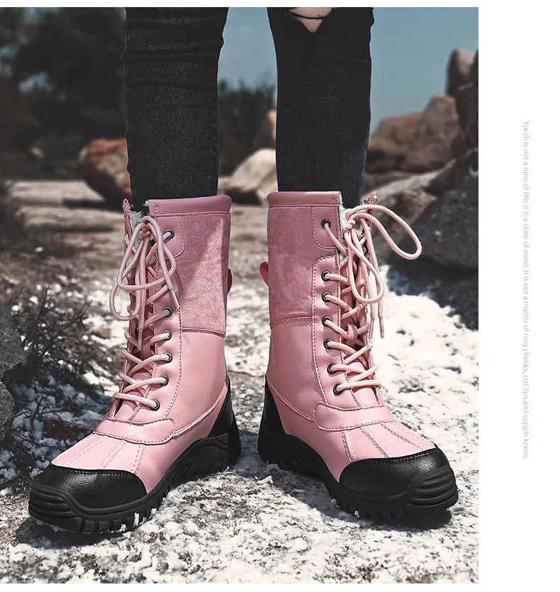 Женские зимние сапоги на шнуровке PINSEN, теплые водонепроницаемые удобные сапоги до середины икры, 2022