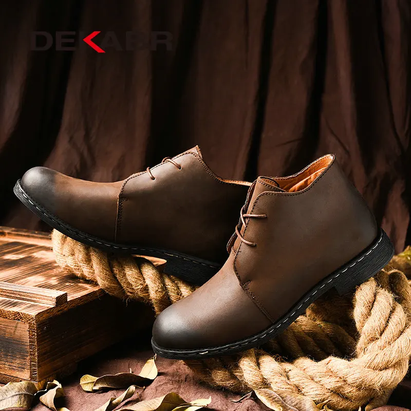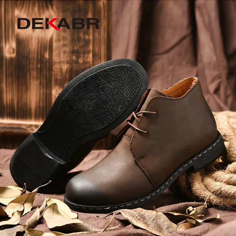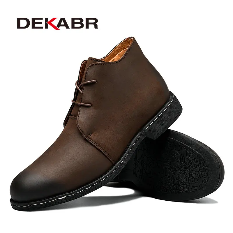 Мужские повседневные легкие сапоги DEKABR, классические дышащие кожаные сапоги для прогулок, модные удобные нескользящие резиновые мотоботы