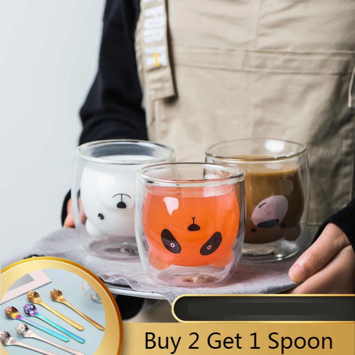 Симпатичные стеклянные кружки в форме медведя с двойными стенками, устойчивая чайная кружка кунг-фу, детская посуда для напитков, кофейные чашки для любимых детей, кружка, подарок