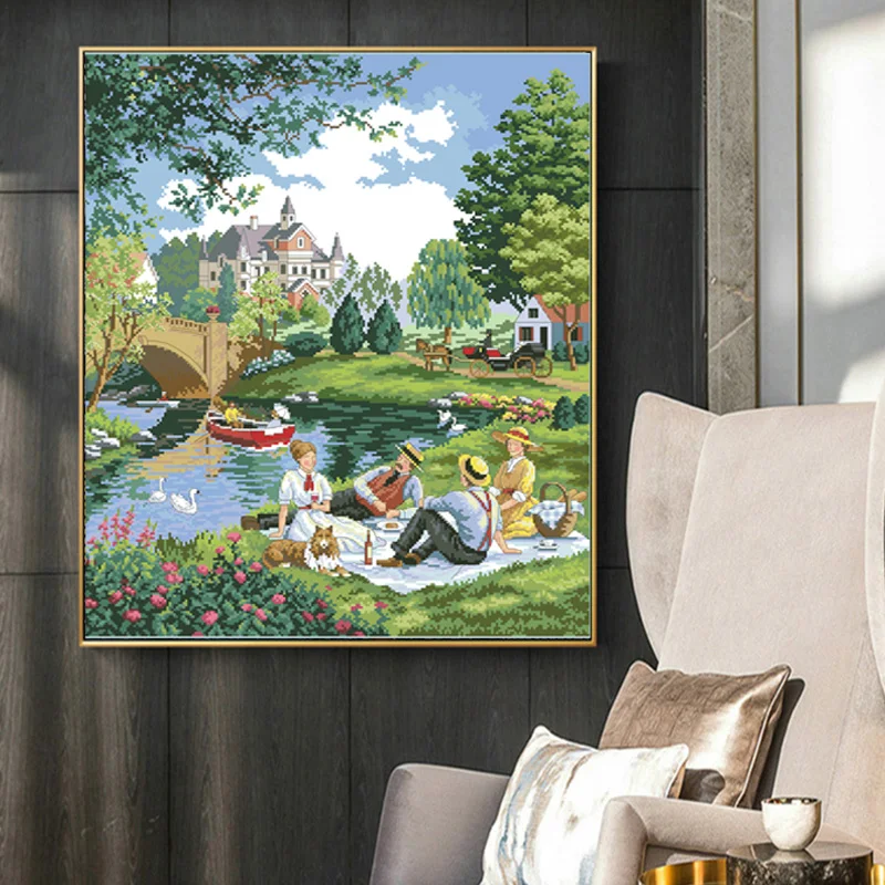 Joy Sunday, пейзаж парка, Китайская вышивка крестиком, печать на хо...