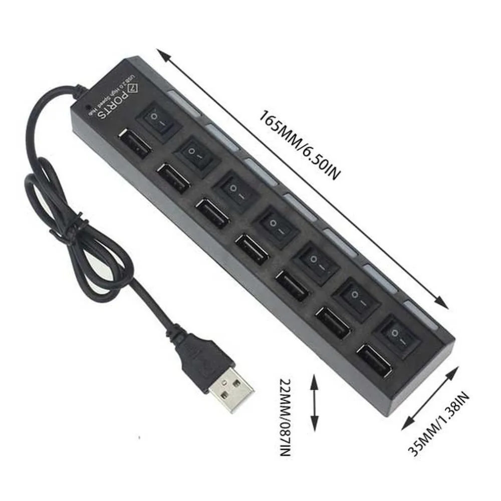 1. Разверните подключения вашего компьютера с помощью этого 7-портовый usb-хаб с переключатель вкл./выкл.).