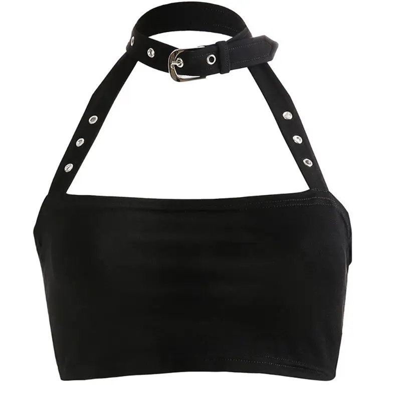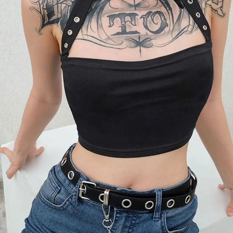 Женский готический панк-чокер Harajuku, короткий топ с лямкой на шее и металлической пряжкой, майка с открытой спиной