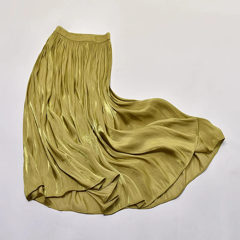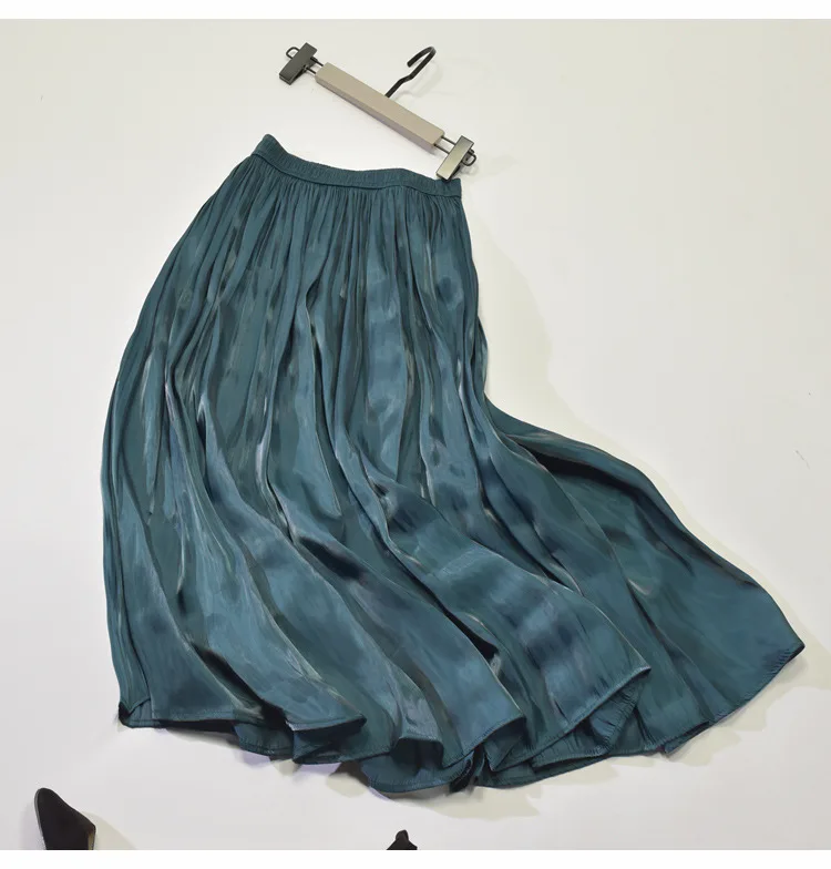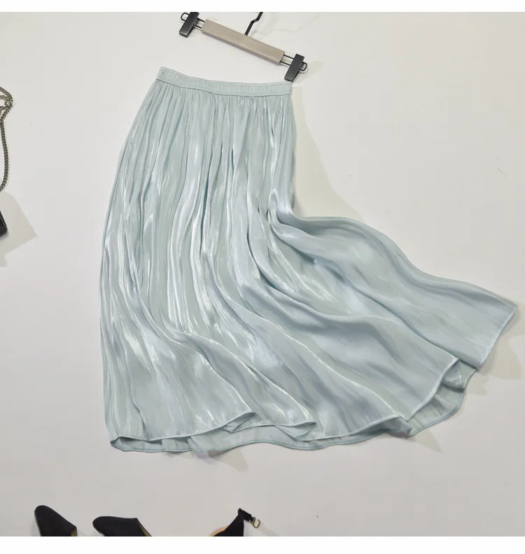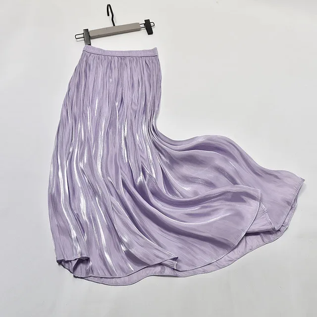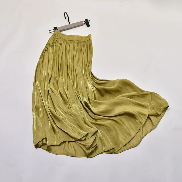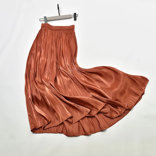 Плиссированная шелковая миди-юбка, женская летняя Макси-юбка...