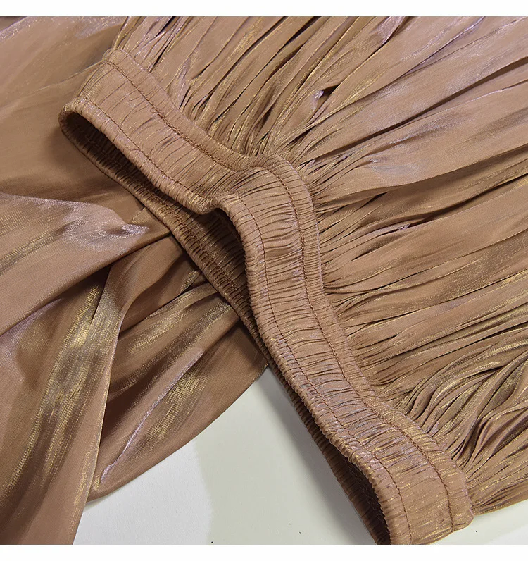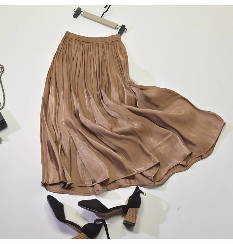 Женская Блестящая шелковая юбка, длинная Плиссированная Юбка-миди с эластичной талией, Пляжная винтажная юбка в стиле бохо, лето 2020 г., юбка макси