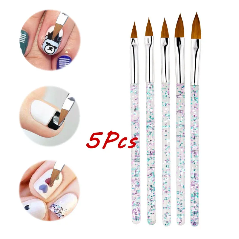 5 шт.компл. 1113151719 мм ногтей кисточка с кристаллами акриловые УФ-гель покраска нажмите с силой так ручка резьба советы маникюрный салон Инструменты