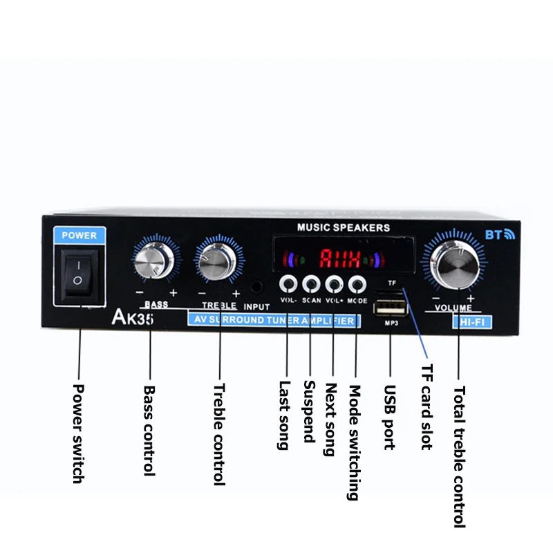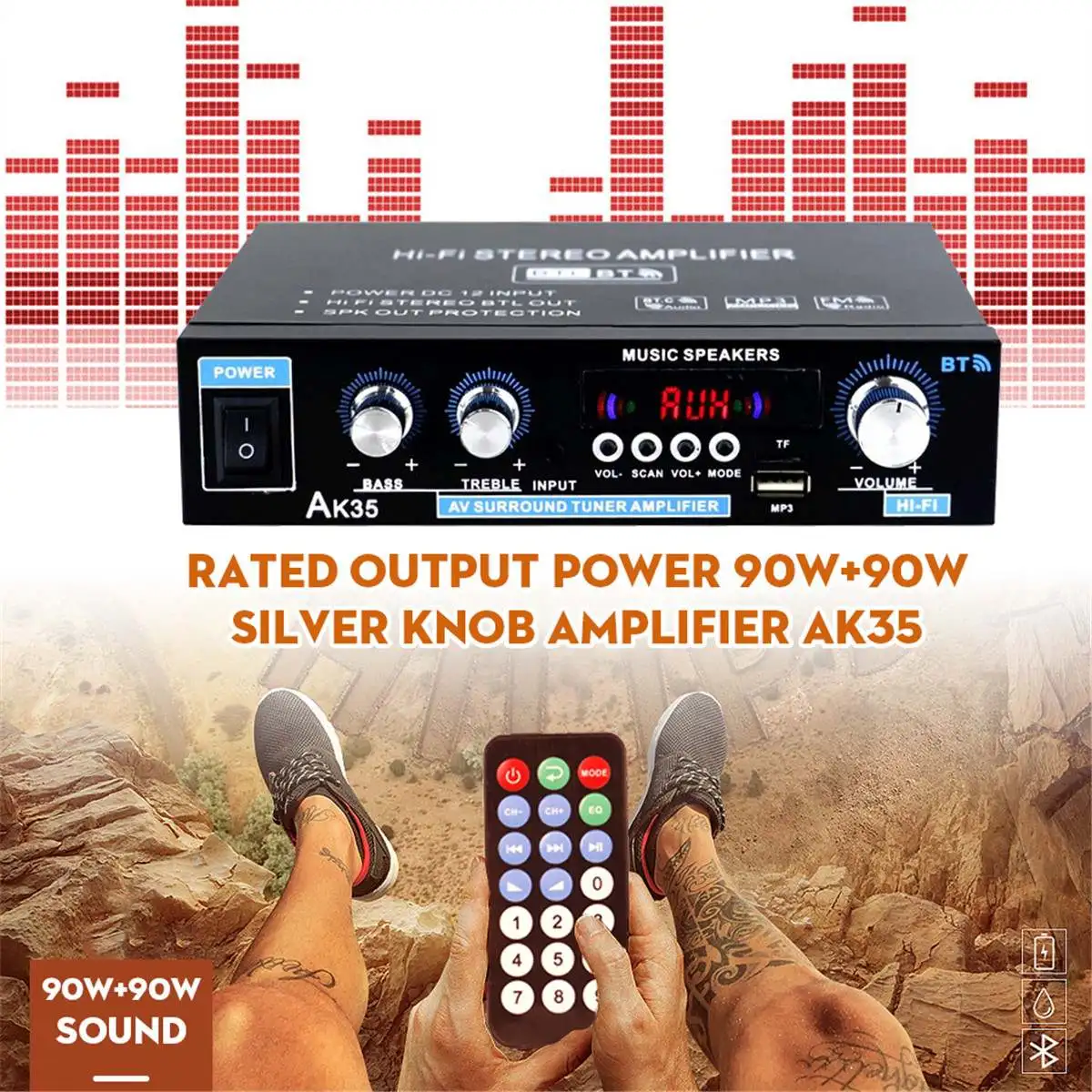Автомобильный Bluetooth стереоусилитель, Hi-Fi цифровой аудио усилитель мощности для домашней караоке, FM USB автомобильный усилитель с дистанционным управлением 90 Вт + 90 Вт