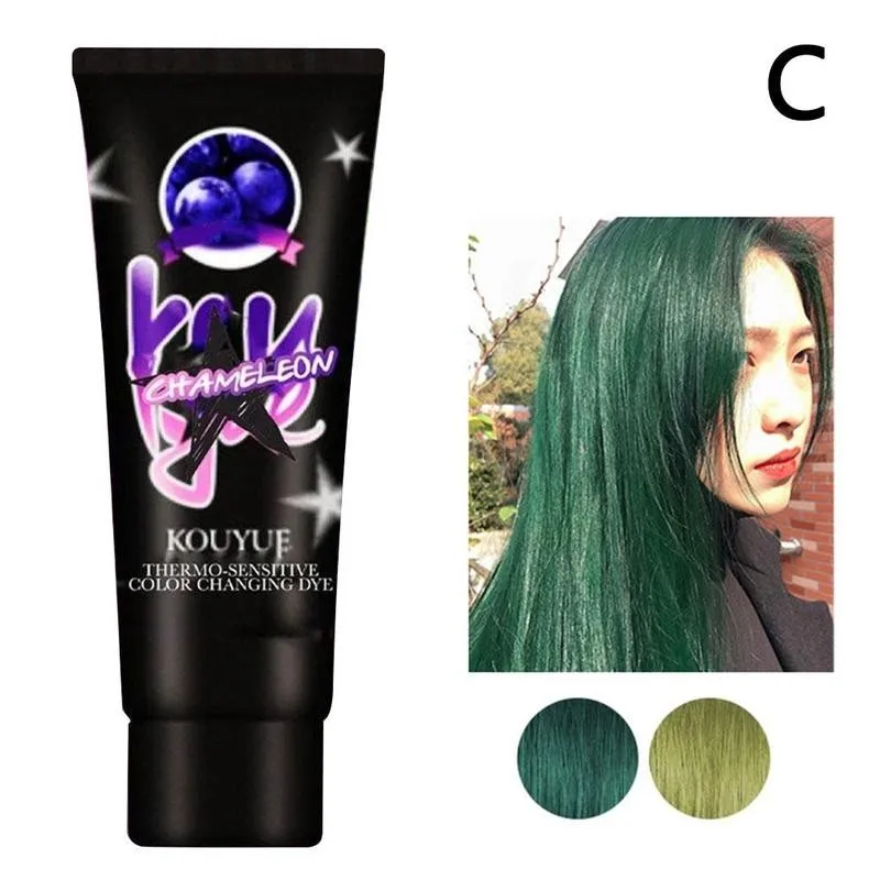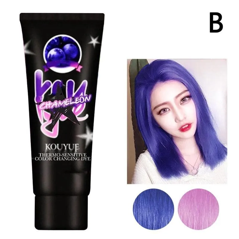 Прост в использовании! Все, что вам нужно сделать, это нанести цвет на чистые, сухие волосы без кондиционера или продукта. Погрузите губку-аппликатор в цветную банку для крема и приложите ее к замку и Веселитесь! После нанесения цвета, высушите волосы или нанесите выпрямитель для волос на пучок волос, волосы превратятся в другой цвет. Когда вы подвергаете его воздействию высоких температур, Временный краситель меняет цвет, и когда ваши волосы остынут, он изменяется на первый цвет.