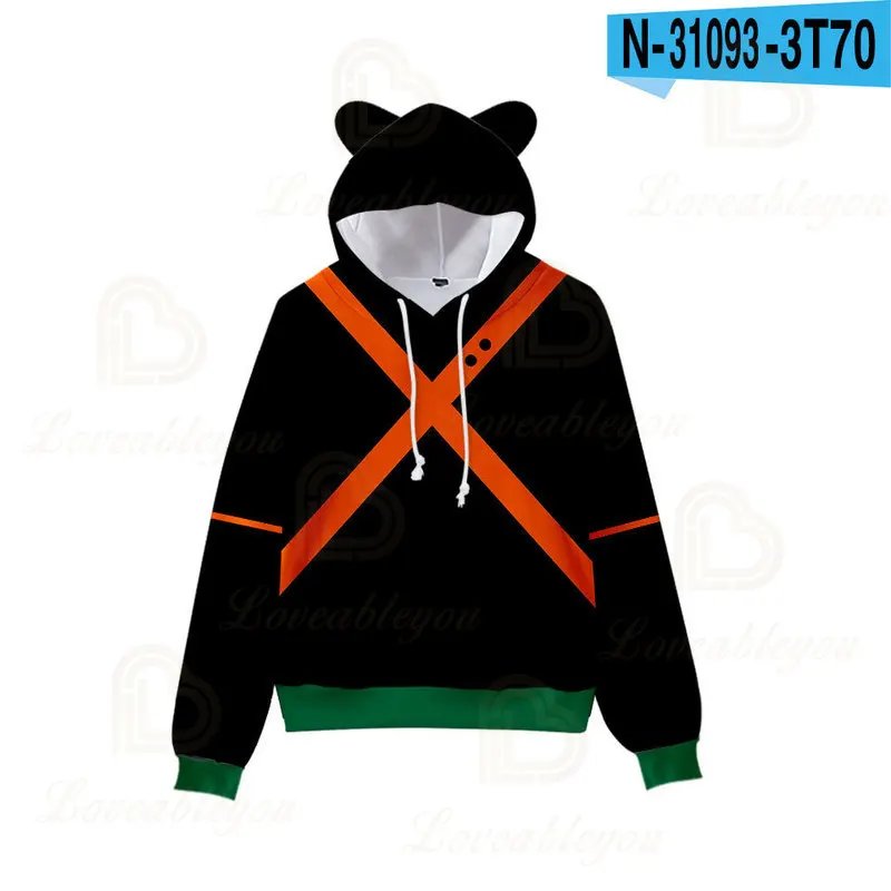 Детская толстовка с капюшоном My Hero Academia, в стиле Харадзюку, с кошачьими ушками, с длинными рукавами, для мальчиков и девочек, 2020