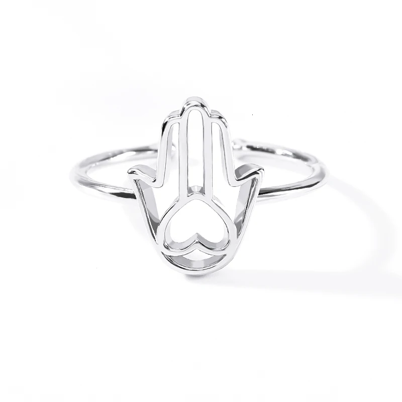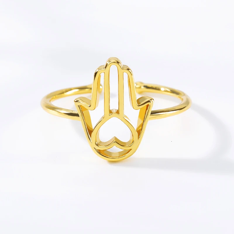 Регулируемые кольца ручной работы золотого цвета готические ювелирные изделия из нержавеющей стали в форме сердца Хамса винтажные кольца для женщин подарок подруге