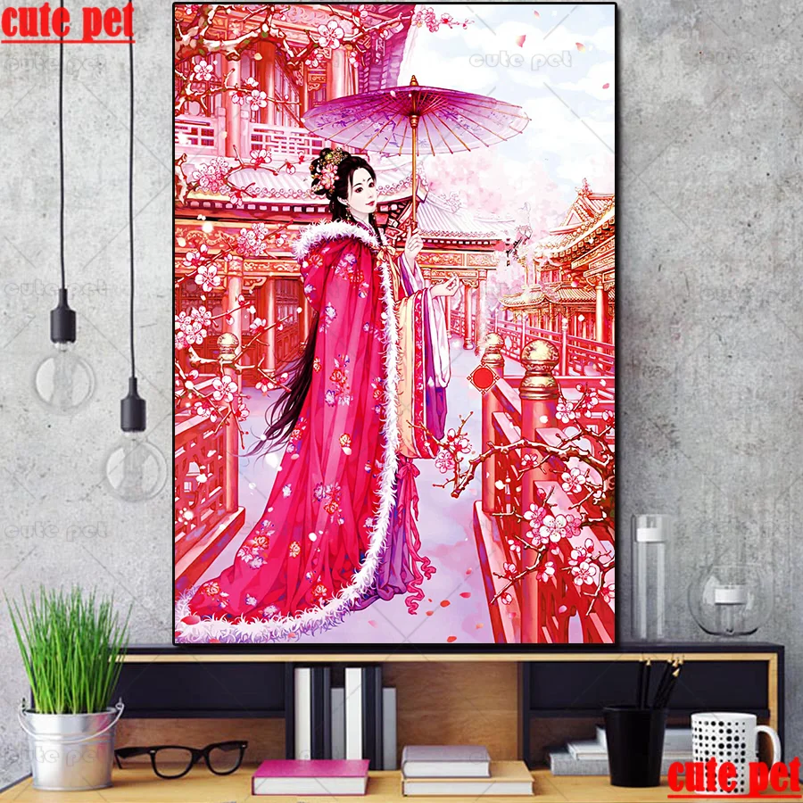 Алмазная вышивка японское Вишневое дерево пейзаж Картина Стразы бус...
