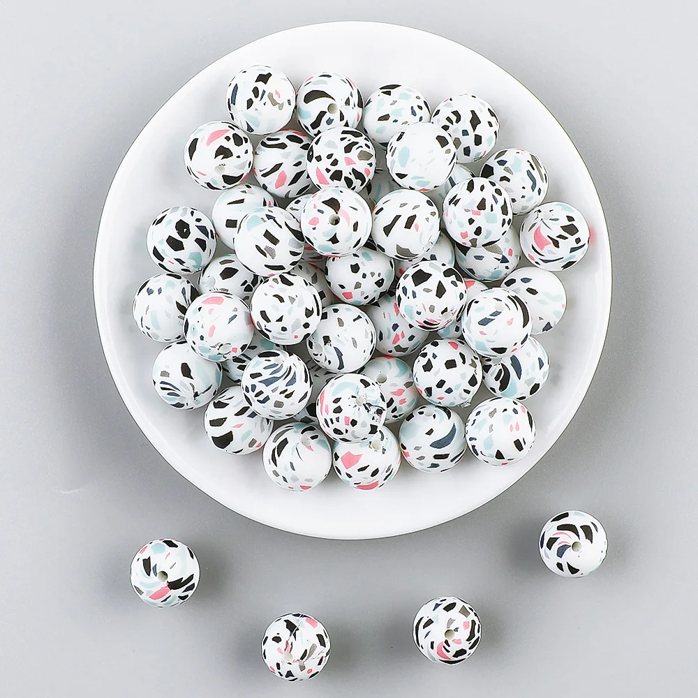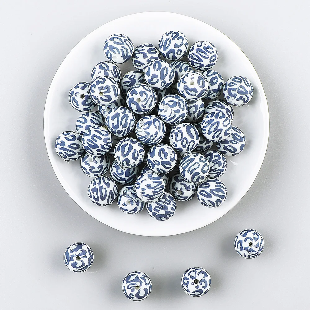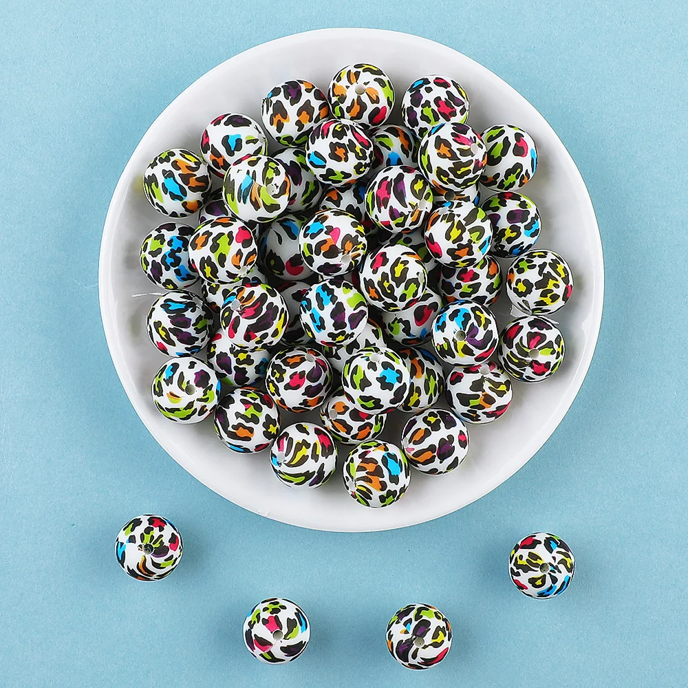 TYRY.HU Новые 50 шт 15 мм Силиконовые леопардовые бусы с водным принтом Сенсорное прорезывание зубов ожерелье DIY аксессуары цепочка для соски для кормления BPA бесплатно
