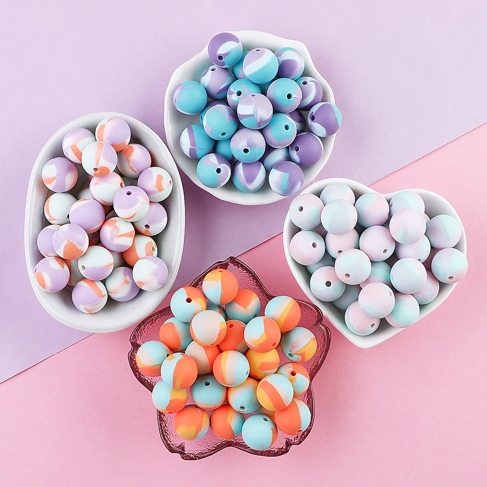 15 новых цветов-круглые бусины-разноцветные силиконовые бусины