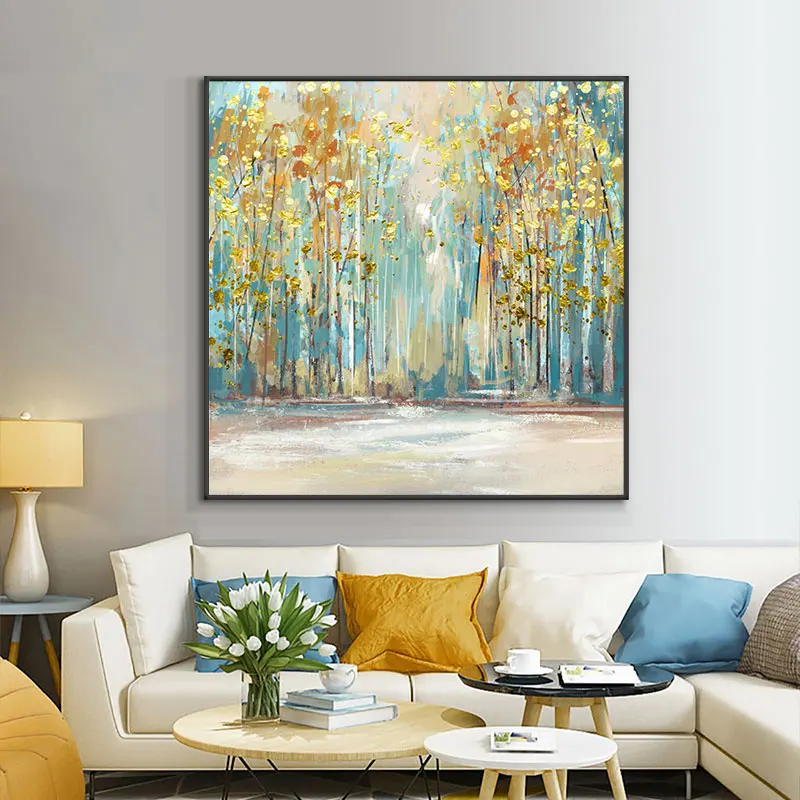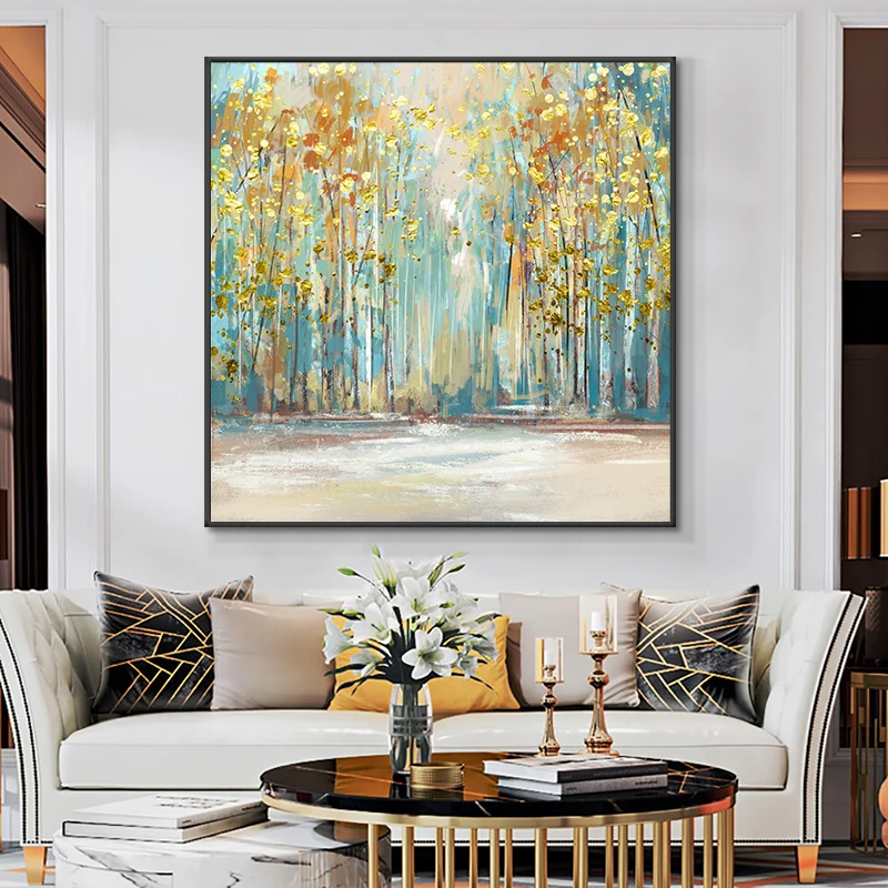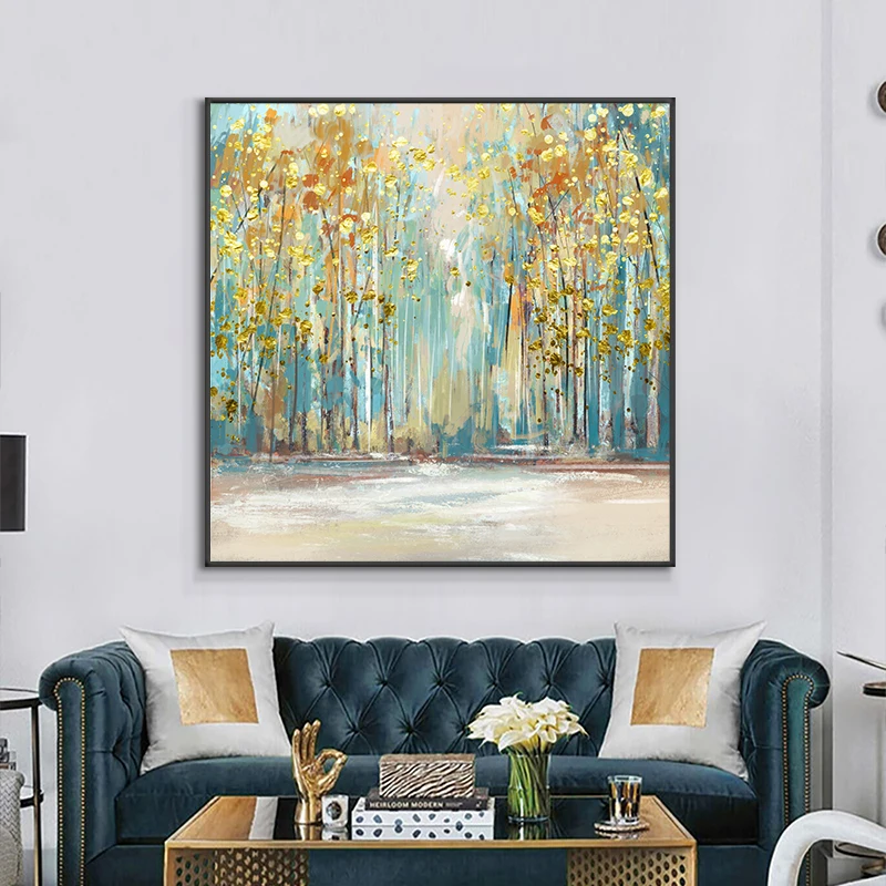 Современная абстрактная картина маслом с золотыми деревьями на холсте, скандинавский постер, Настенная картина для гостиной, домашний декор, без рамки