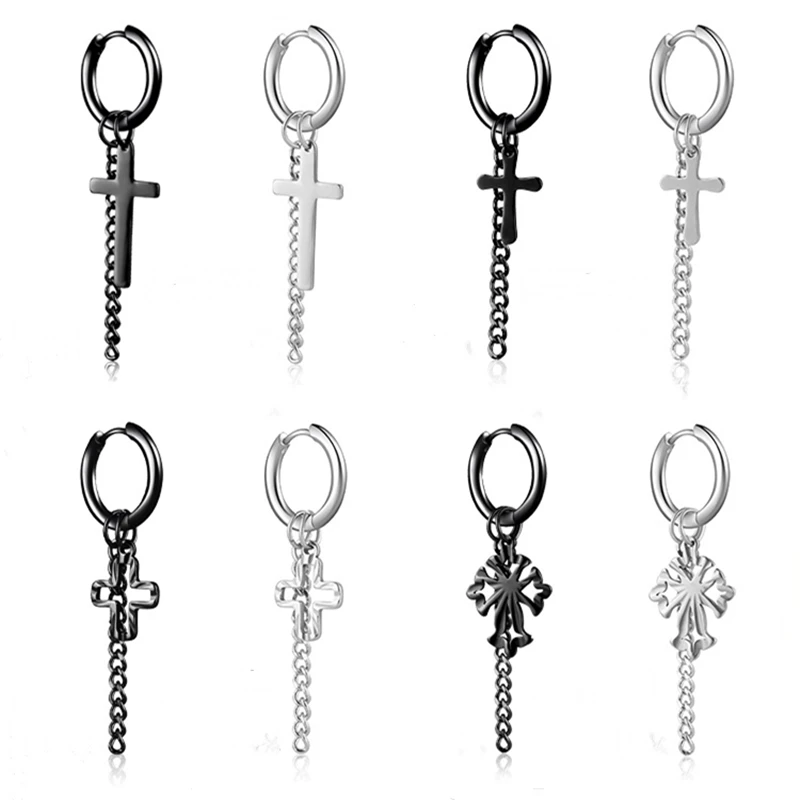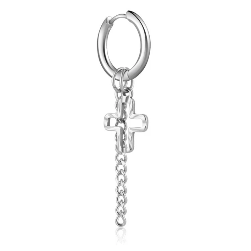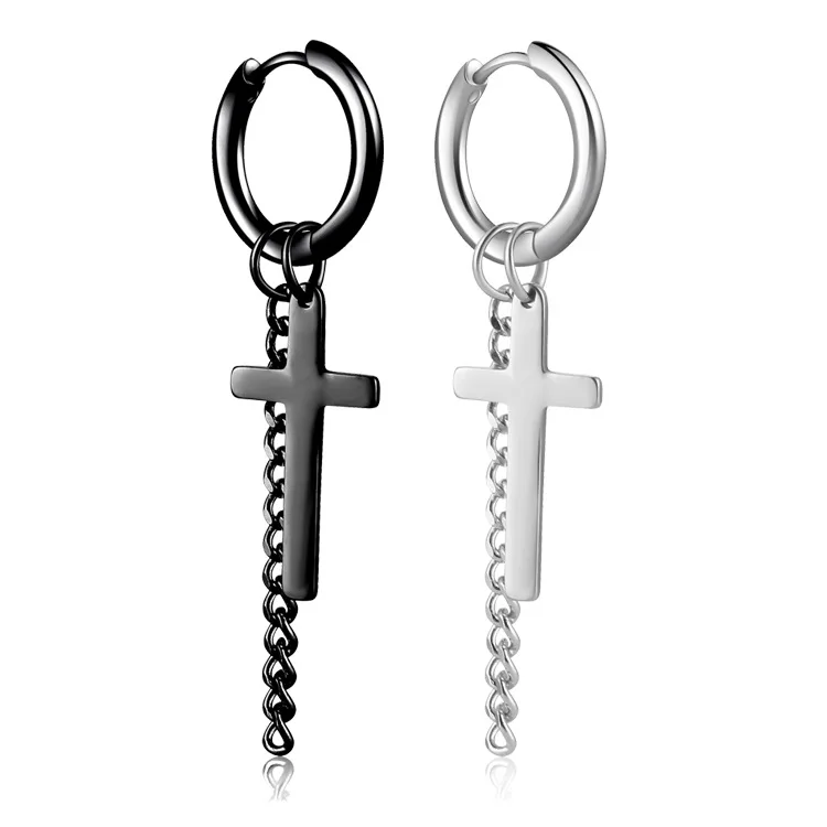 Kpop ювелирные изделия из нержавеющей стали крест Подвесные серьги длинная цепочка кисточка серьги для мальчиков и девочек модные унисекс аксессуары в стиле панк