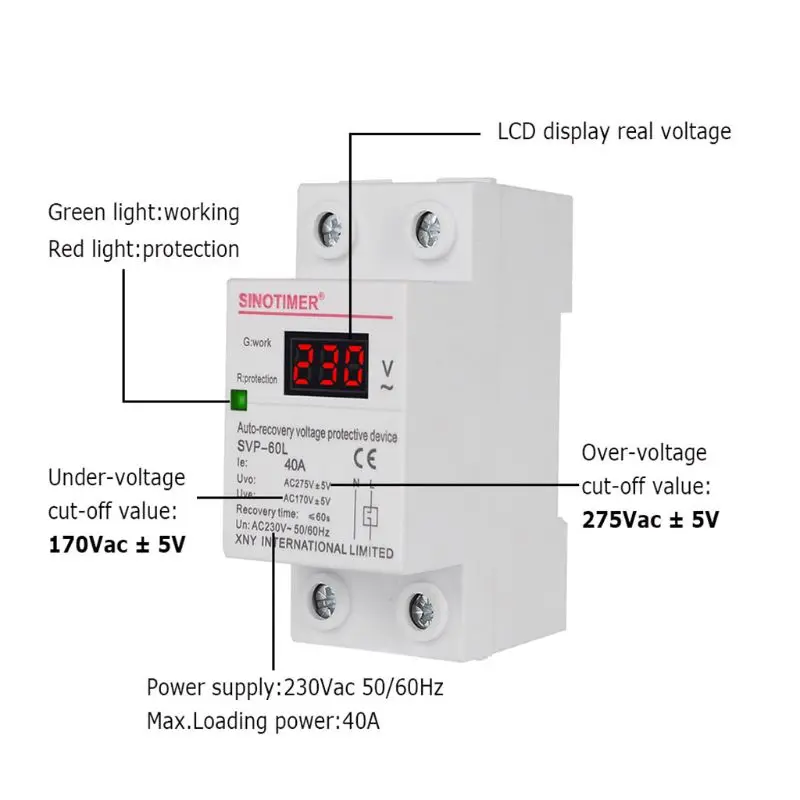SVP-60L 230V AC 40A Цифровой вольтметр с дисплеем, самосброс, бытов...
