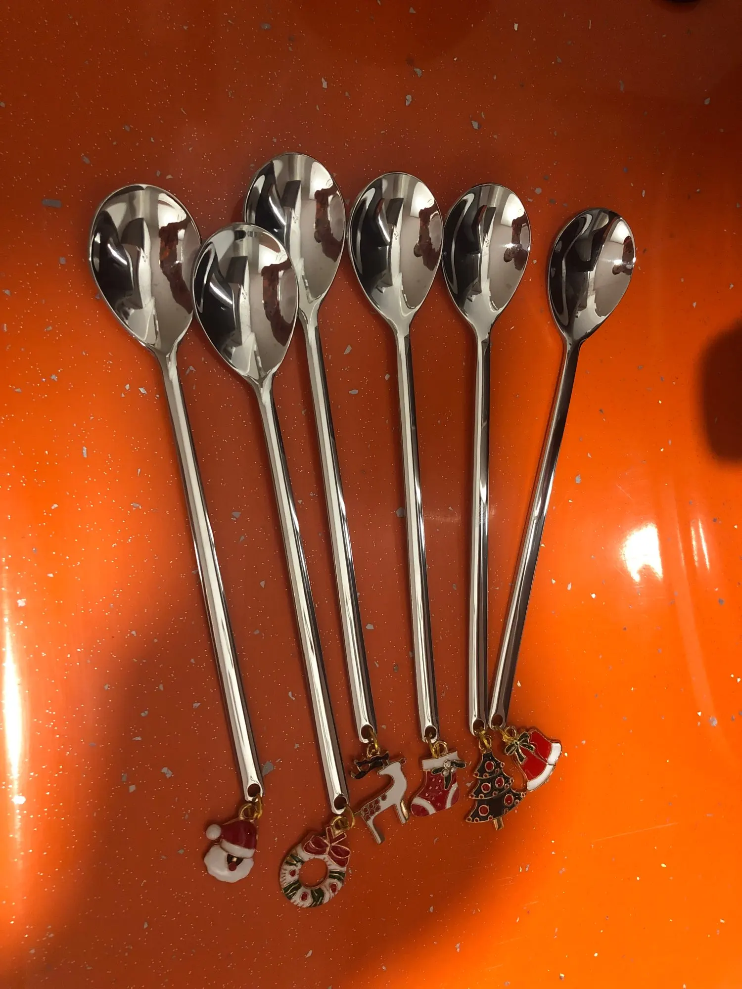 Набор кофейных ложек из нержавеющей стали ложка для перемешивания, 6 шт., ложки для помешивания ложек, Рождественский подарочный набор, праздвечерние чные украшения для стола, кофейная ложка