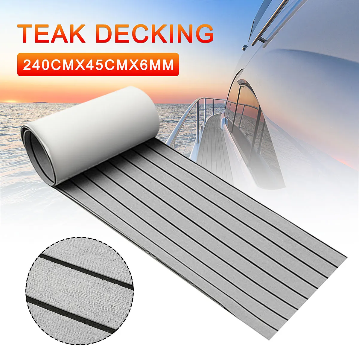 Самоклеящийся Тиковый лист 6 мм из пены ЭВА, Морская Лодка, яхта, синтетическое напольное покрытие из пенопласта, напольный коврик, серый, черный, 240*45 см
