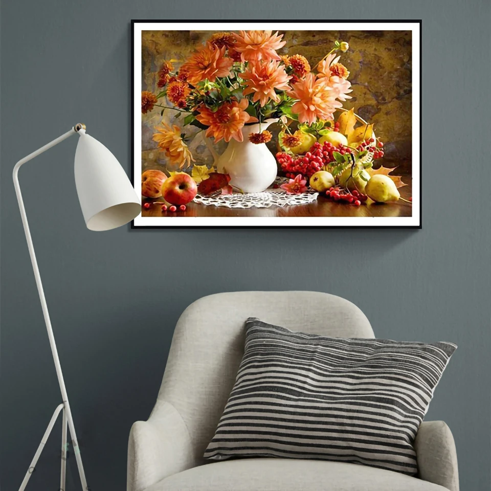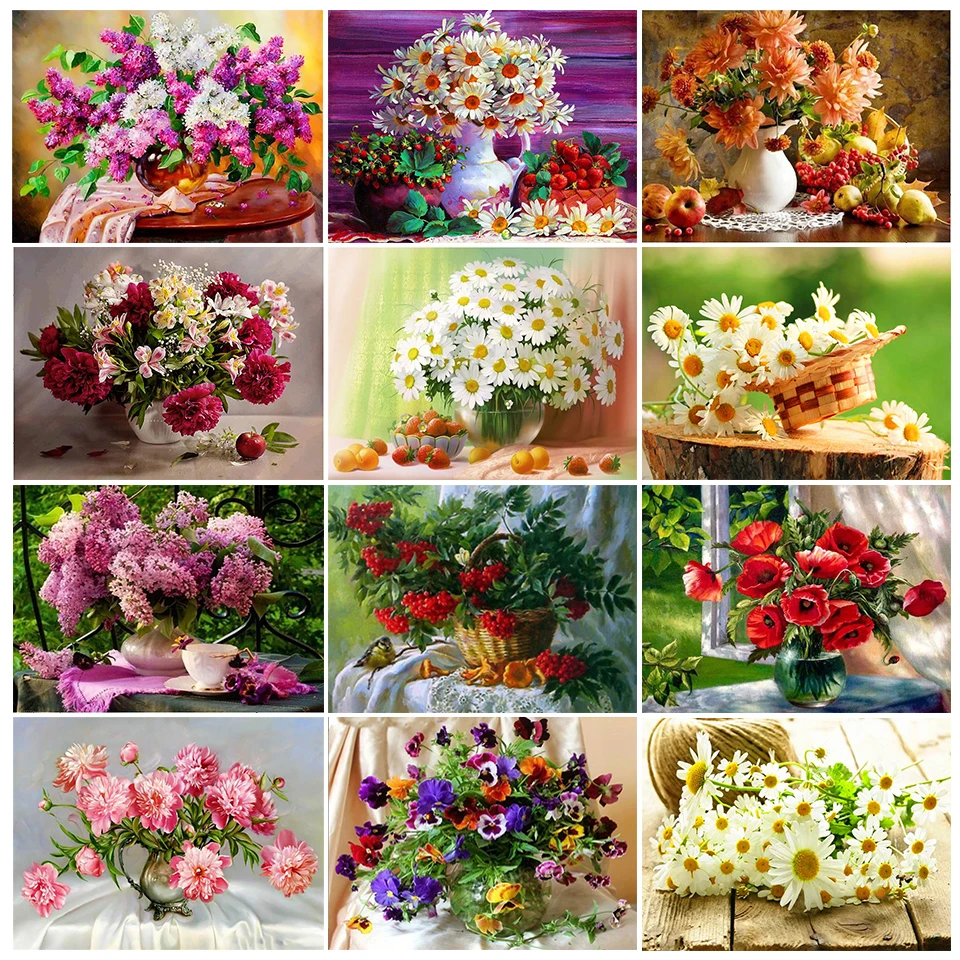 Картина 5D квадратнаякруглая, ваза с цветами, вышивка крестом, вышивка-мозаика стразами, украшение для дома, подарок