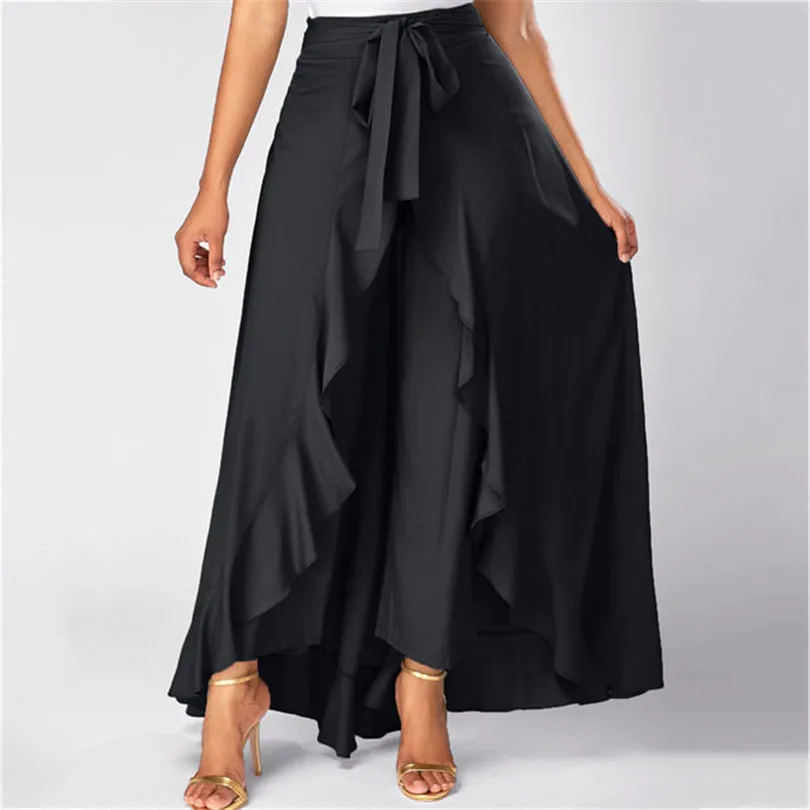 LJCUIYAOпикантные повседневные женские брюки с оборками, высокой талией, молнией и поясом, с разрезом, летние женские широкие брюки, осенние брюки