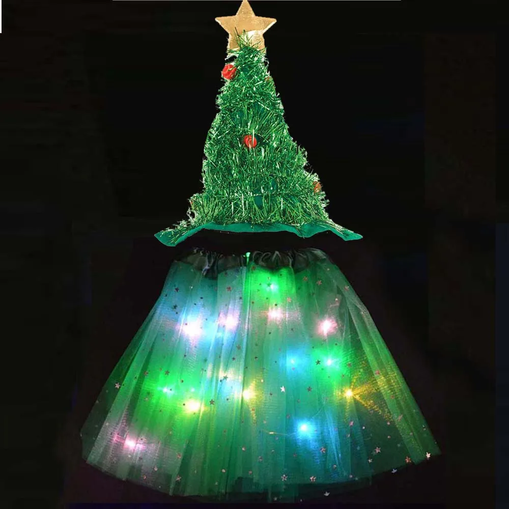 Детская и Женская легкая светодиодная юбка-пачка, шапка с деревом, ...