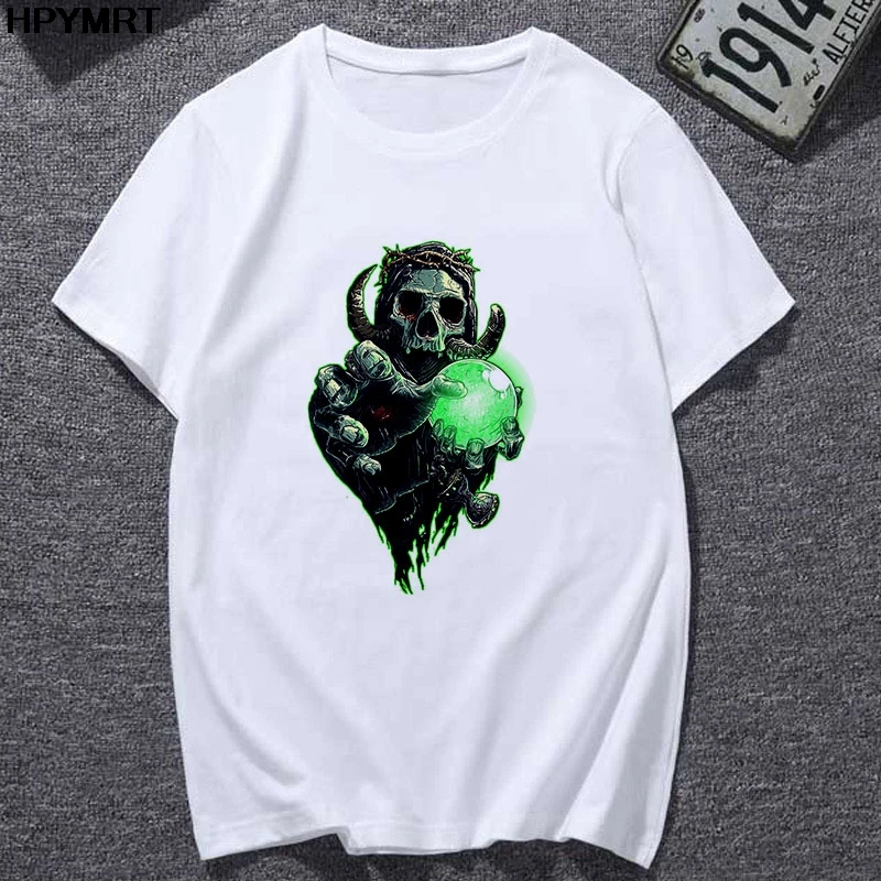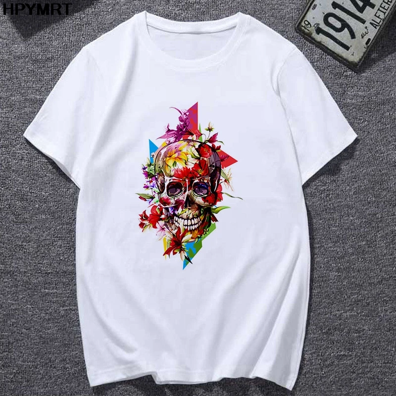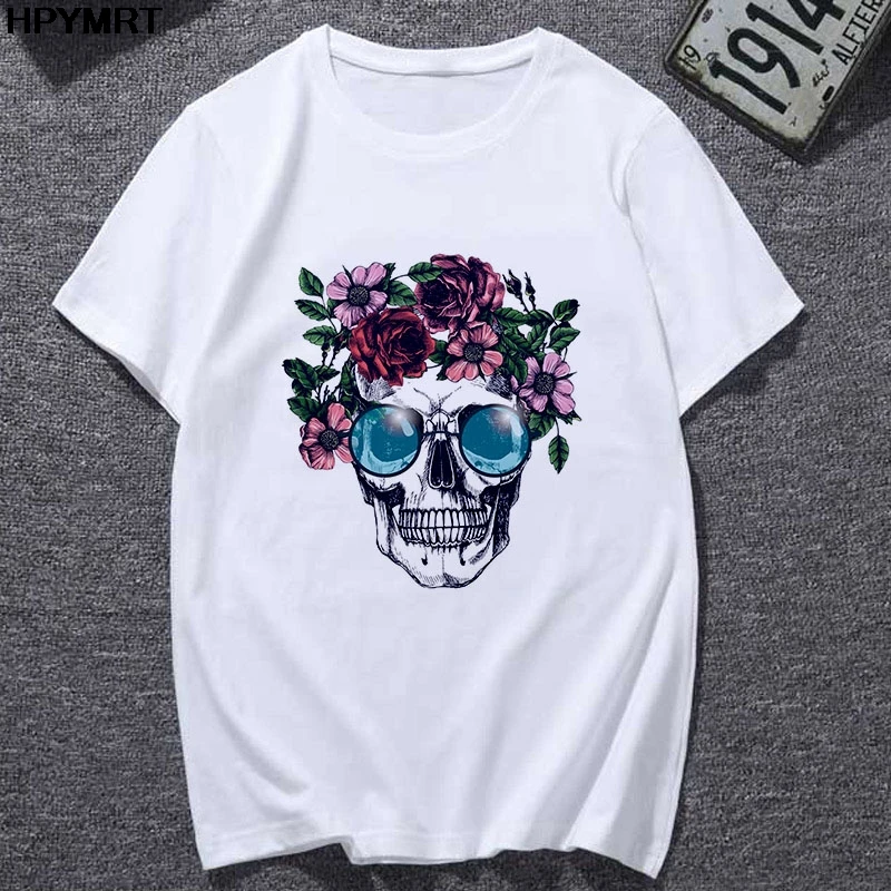 Новая футболка с принтом страшного черепа, женская футболка в стиле Харадзюку, белая повседневная уличная одежда больших размеров, модные футболки, женские топы, футболка