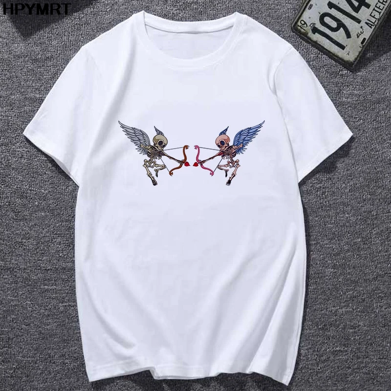 Модный Топ Женская футболка с принтом скелета Harajuku футболка жен...