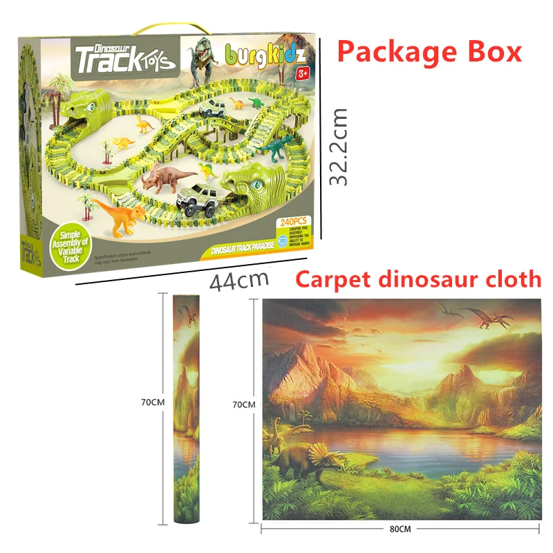 Полезные советы: эта игрушка динозавр отправляется в оригинальной коробке, это лучший подарок на Рождество и новый год для ваших детей в этом году!Детали:Набор игрушечных машинок-трек динозавров стремится взять детей в мир Юрского периода, развить их фантазию и творческие способности.Изготовлен из высококачественного пластика, прочный, экологичный, безопасный и нетоксичный, безвредный для ваших маленьких детей.Детали трека легко собираются и разбираются, дети могут строить или создавать различные дорожки в соответствии с собственным дизайном.Спецификация:Материал: пластикПримечание: дети младше 3 лет должны играть под присмотром взрослых.Комплектация:1 x набор игрушечных треков