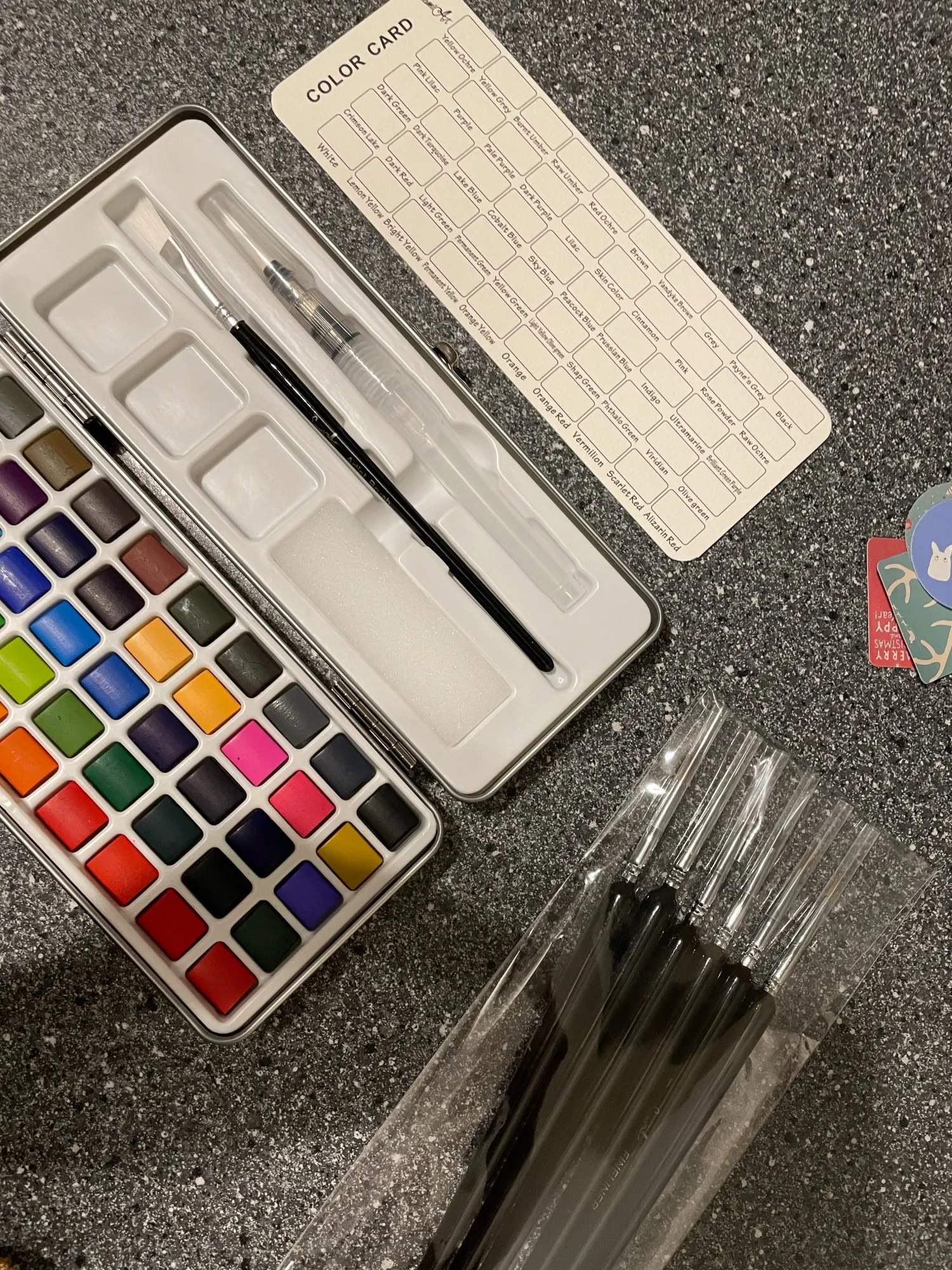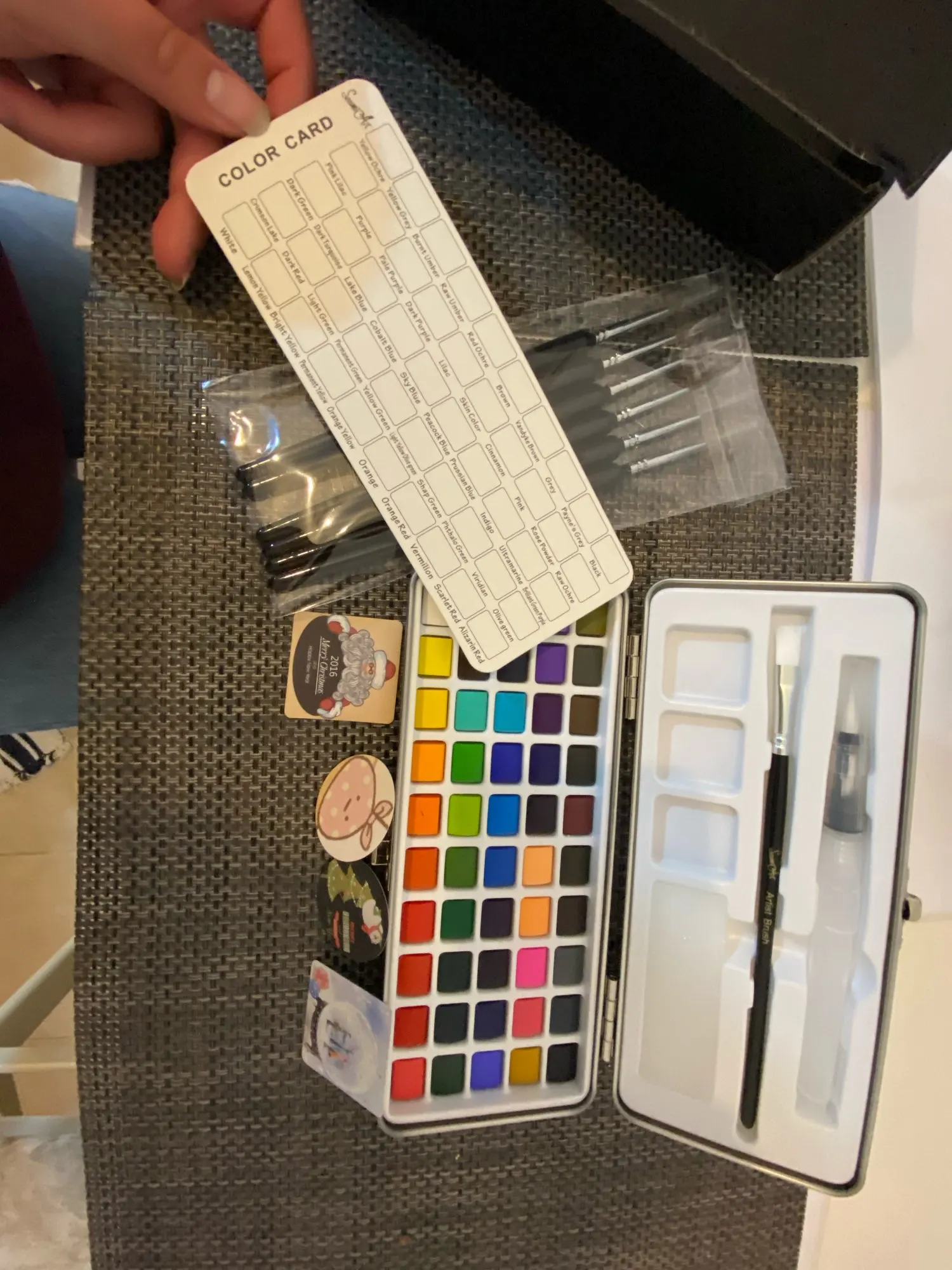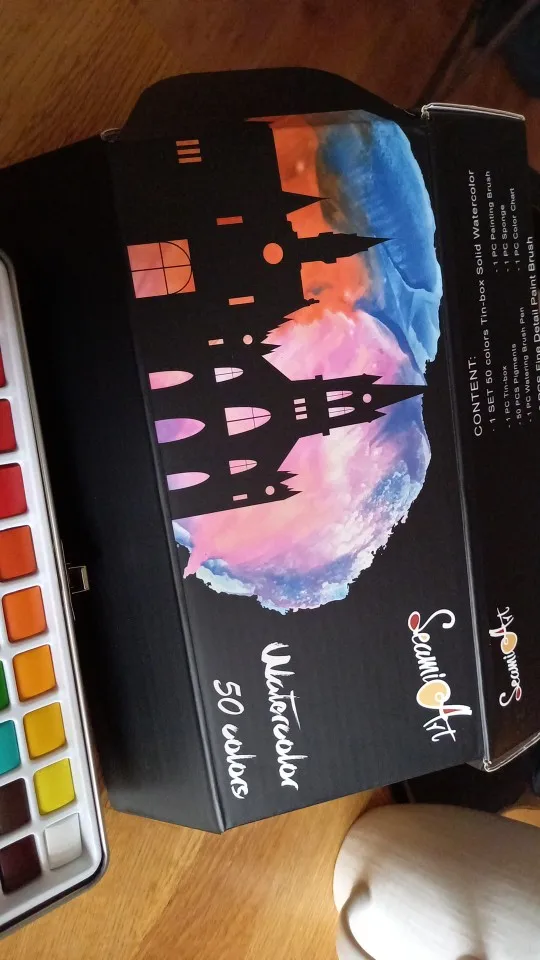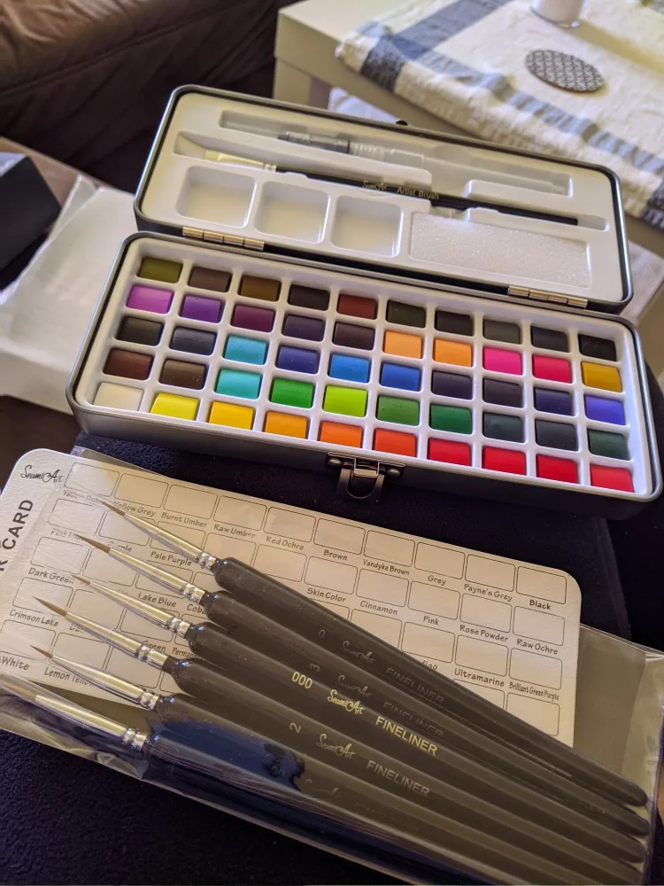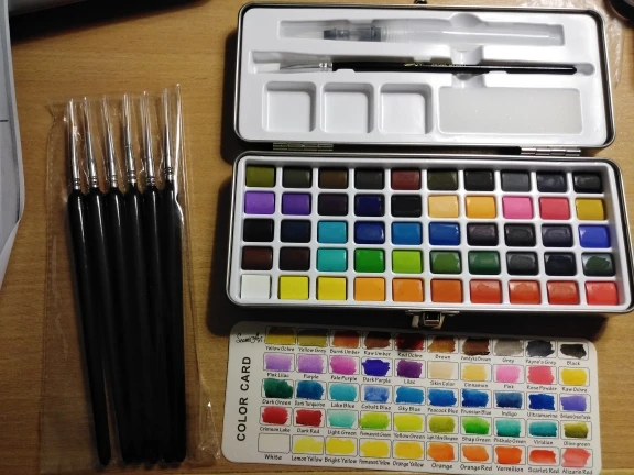 Я еще не пробовал их, но думал, что они будут больше. Деревянная щетка была сломана, но я смог починить ее клейкой лентой, и прозрачная щетка выглядит не очень хорошо. Я даю ему три звезды, потому что заказ прибыл очень быстро, и я думаю, что акварели будут хорошо работать по цене, которую они имеют.