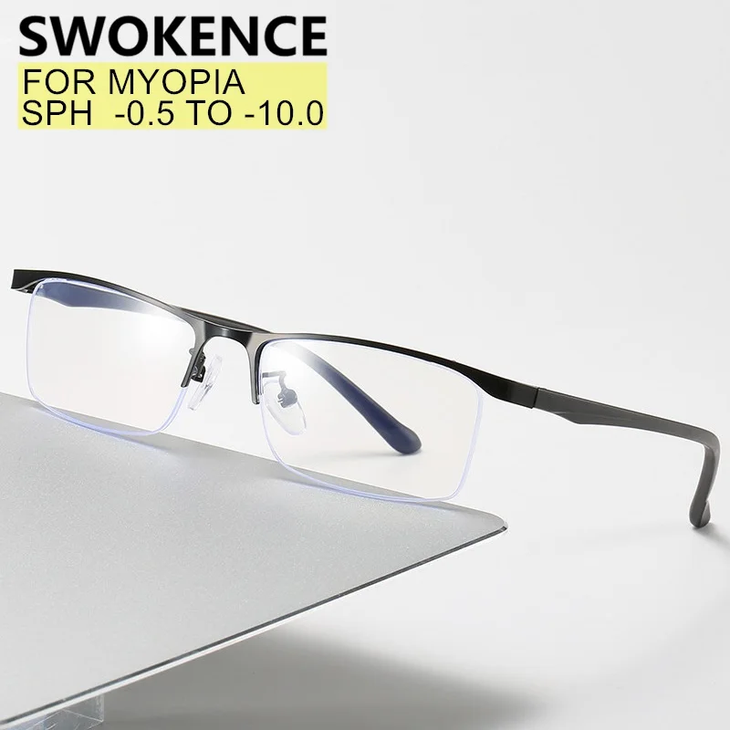SWOKENCE с плоскими стеклами и половинной рамкой близорукие очки с диоптриями-0,5 до-10 по индивидуальному заказу для мужчин и женщин модные оптическая близорукость очки F019