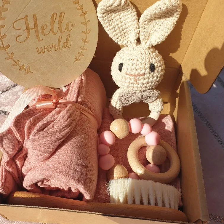Набор детских игрушек для ванны, полотенце для ванны, деревянная погремушка, браслет, игрушки для вязания крючком, товары для ванны для новорожденных, колокольчик