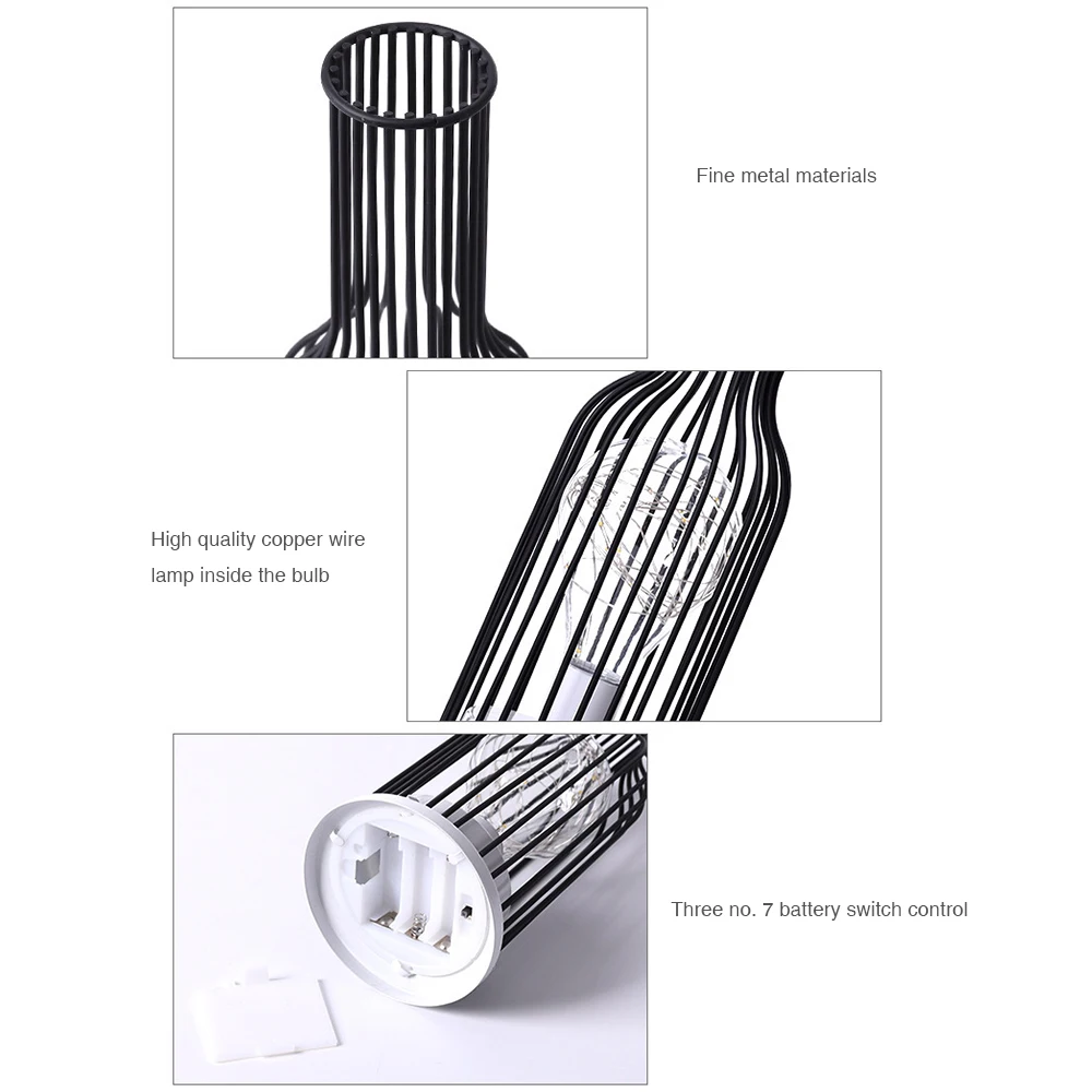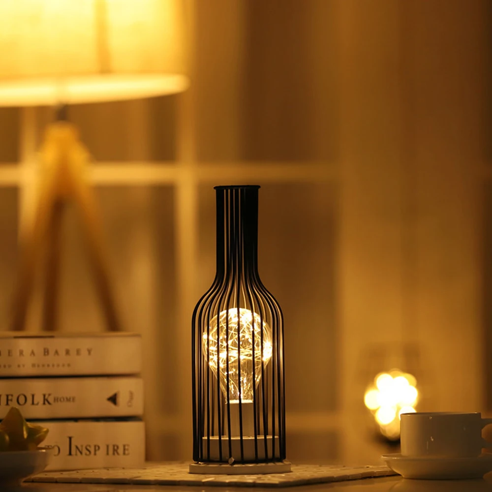 2020 Скандинавская лампа из кованого железа, декоративная лампа для кафе, отеля, балкона, полый светодиодный светильник в форме бутылки вина, лампа со стеклянной водой