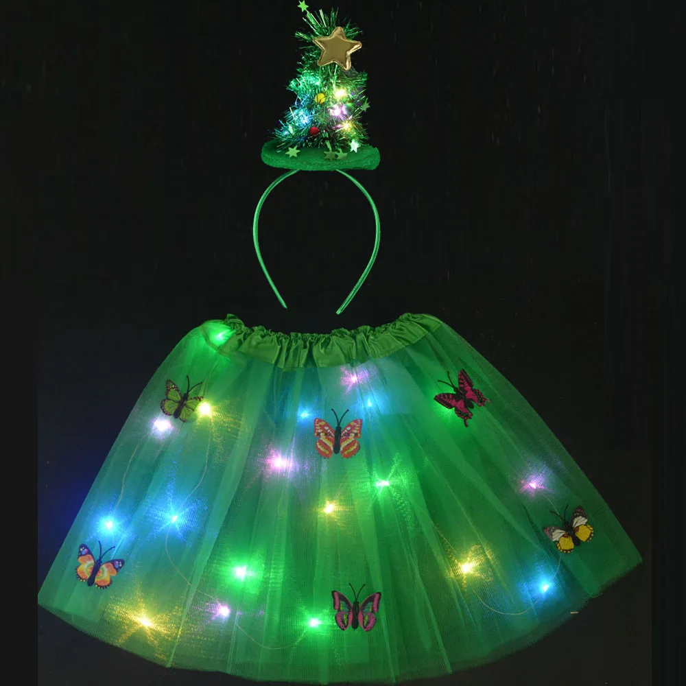 Детская и Женская легкая светодиодная юбка-пачка, шапка с деревом, головной убор, венок, подарок, эльф, Волшебная пачка для косплея, Пасхальная