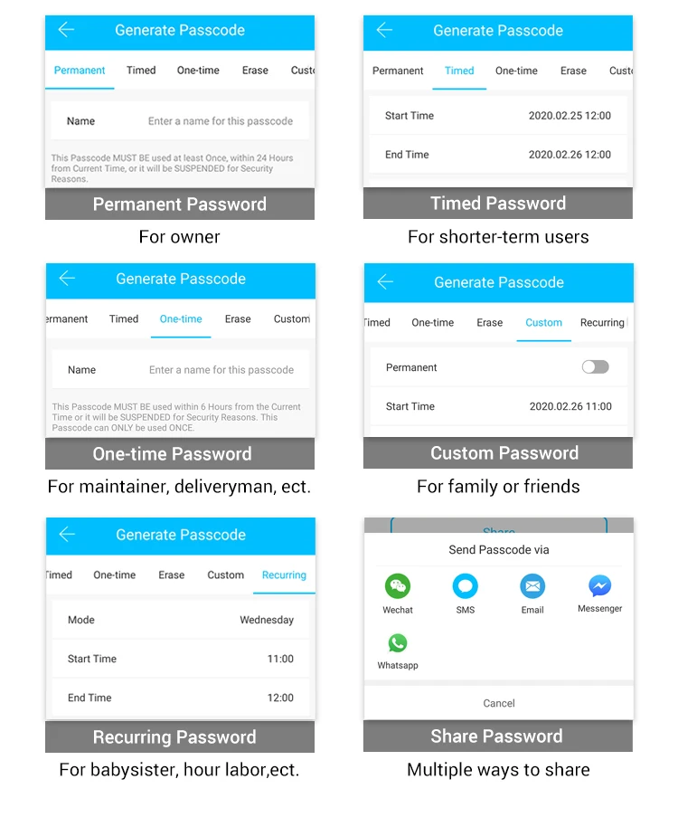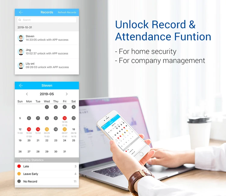 Поддерживается приложением TT lock Приложение TT lock-это приложение smart lock, его множество функций всегда удовлетворяют ваши требования ●Дистанционное управление доступом через шлюз ●Отправьте временный код/ekey удаленно ●Управление паролем, ekey ●Просмотр журналов доступа ●Откройте блокировку через приложение удаленно или почти. ●Настройка режима прохождения ●Проверка времени. И т. д.