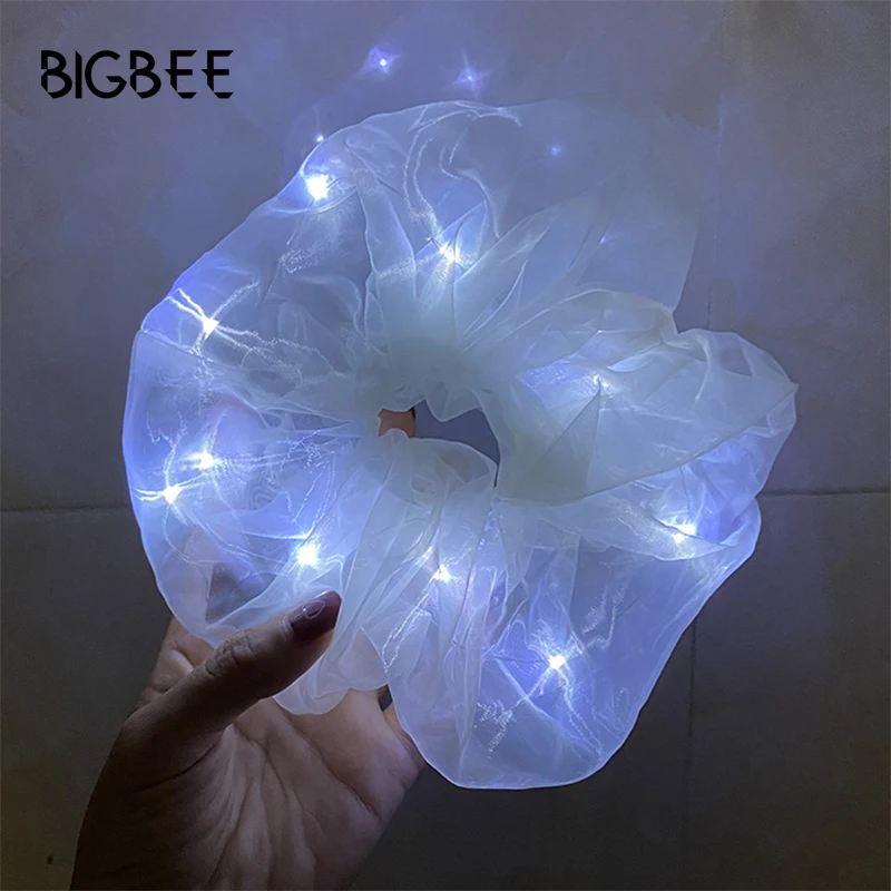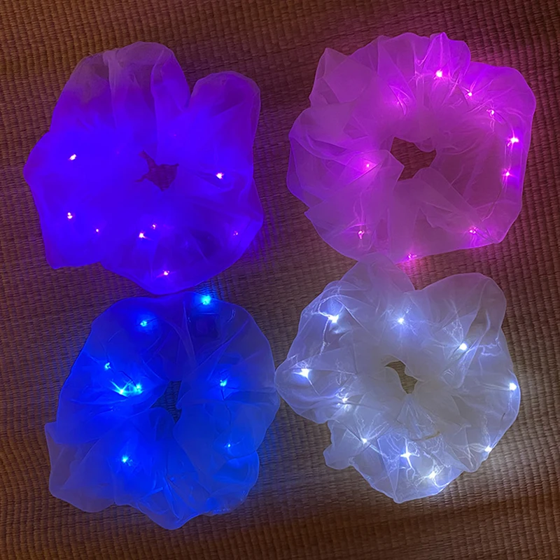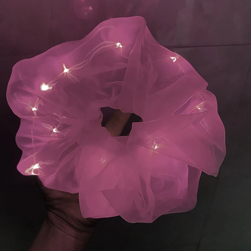 Тонкий светильник газовое резинка для волос, повязка для волос для девочек; Прическа хвостик; Свадебная вечеринка светодиодный светильник волос кольца светящиеся венок Рождественский подарок