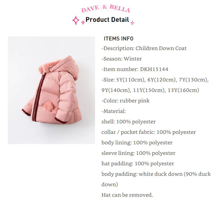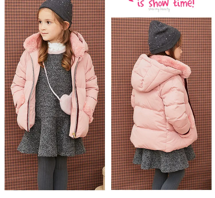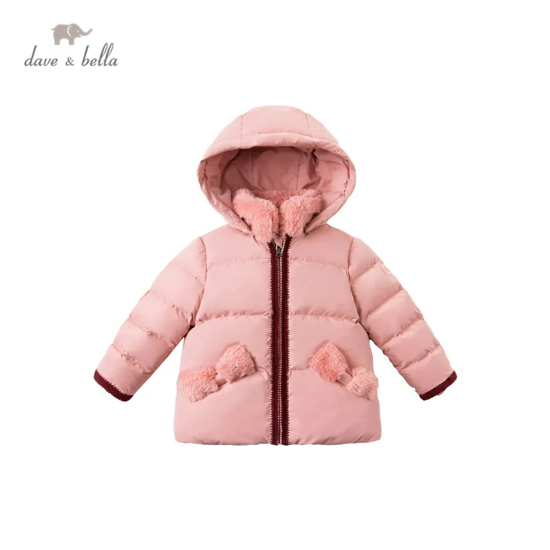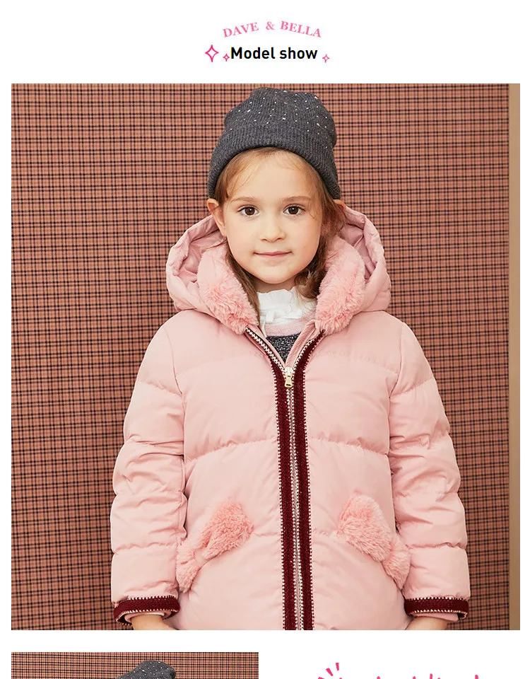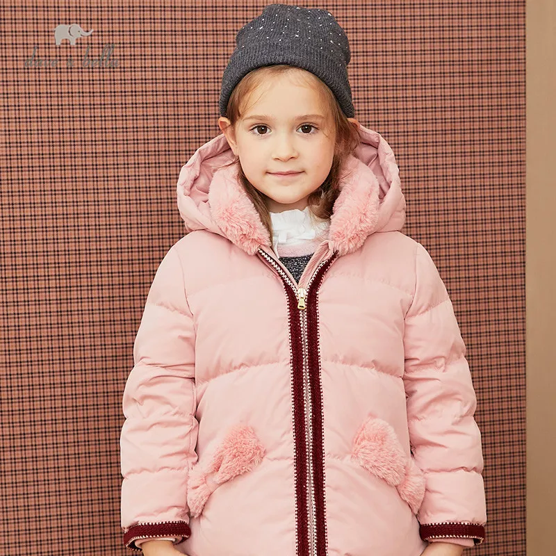 DKH15144 dave bellaзимнее От 5 до 13 лет для маленьких девочек модное пуховое пальто с капюшоном и бантом детская куртка с подкладкой из 90% белого утиного пуха